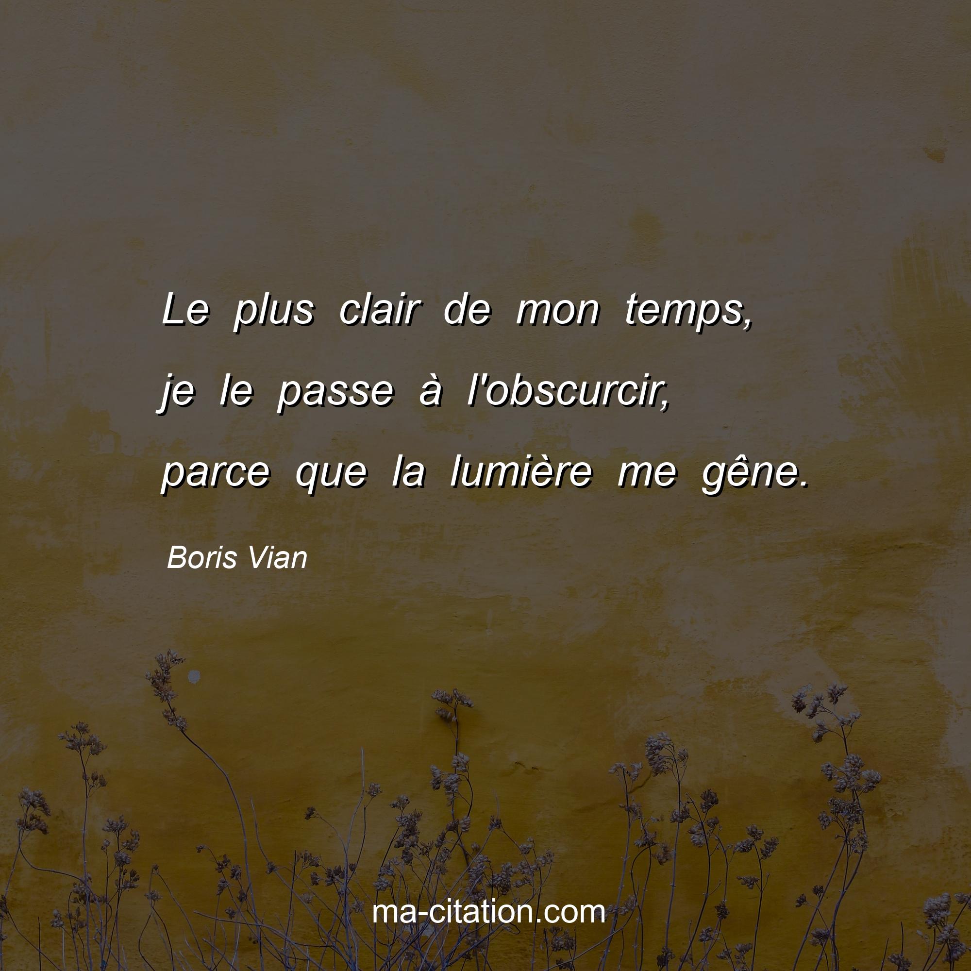 Citation sur la vie de Boris Vian :Le plus clair de mon temps, je le passe à l'obscurcir, parce que la lumière me gêne.