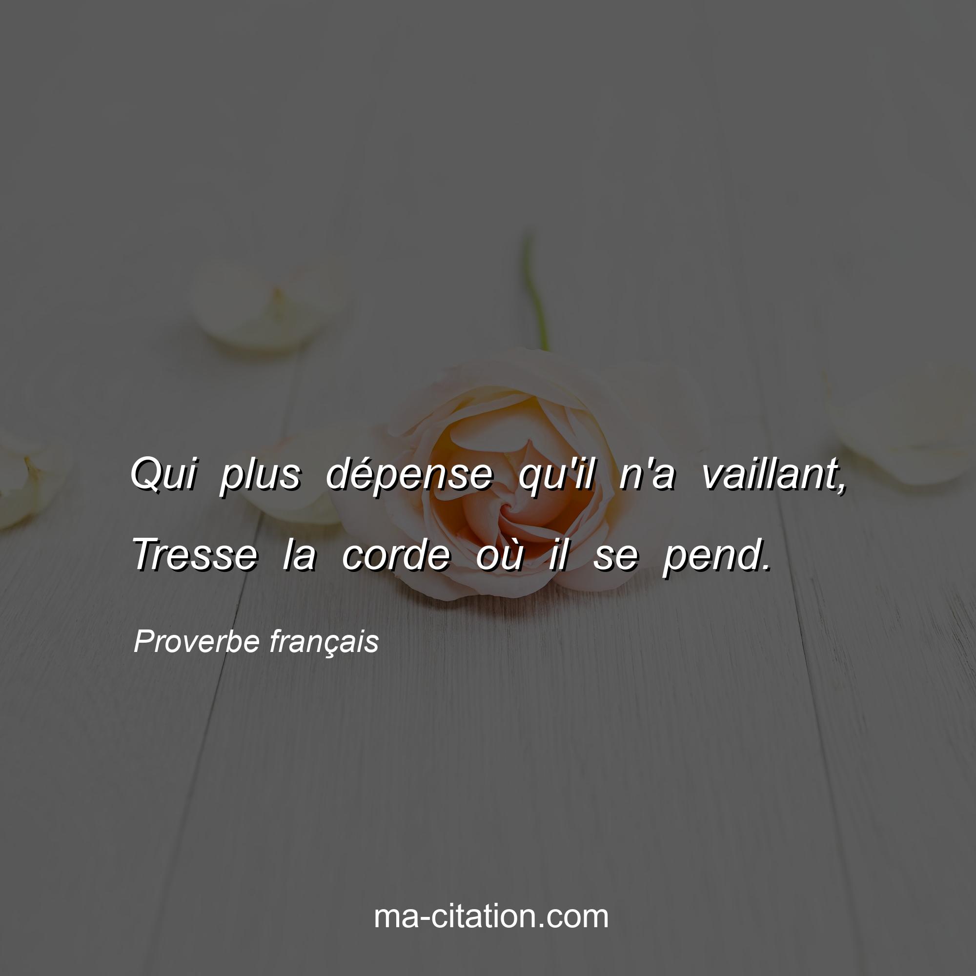 Proverbe français sur la vie :Qui plus dépense qu'il n'a vaillant, Tresse la corde où il se pend.