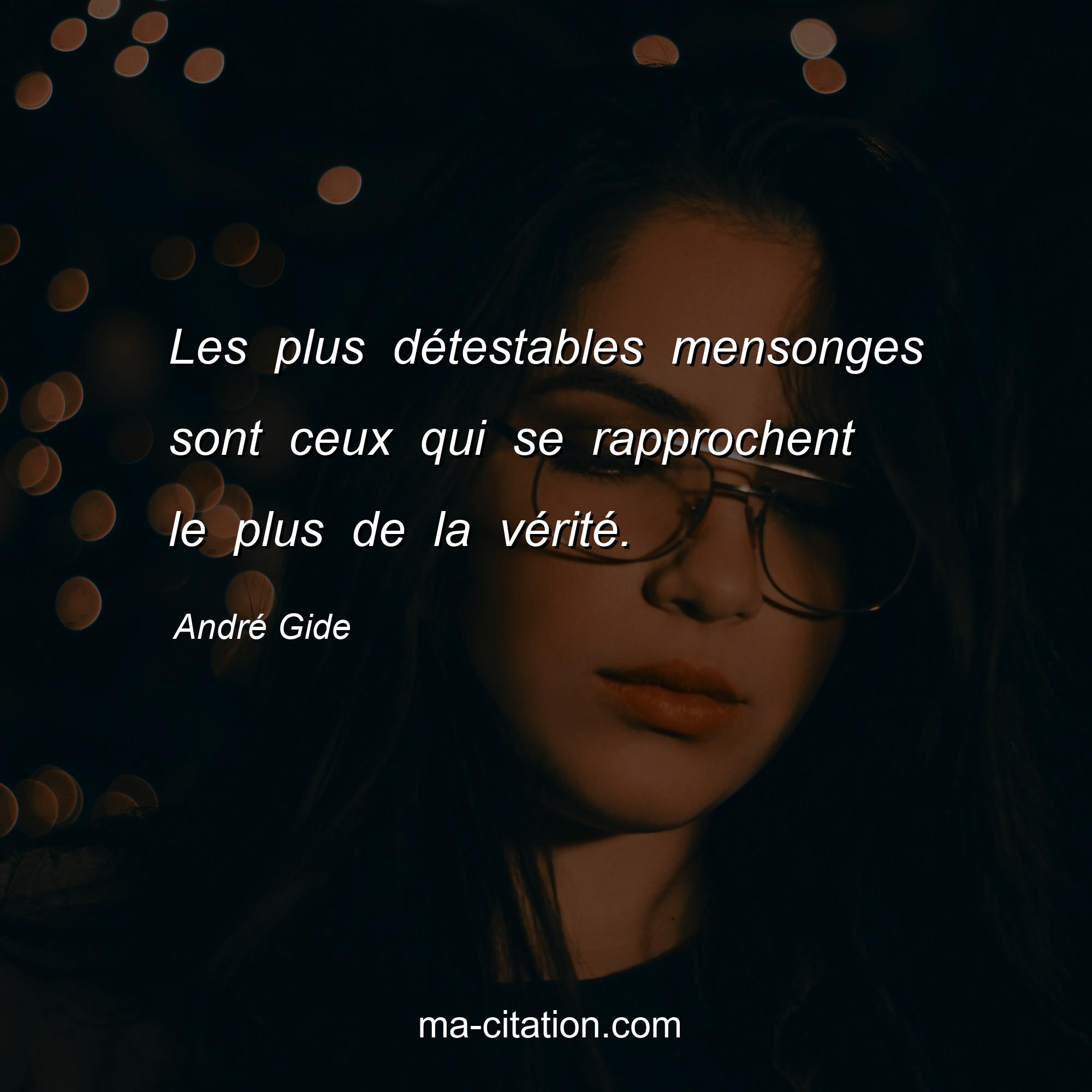 Citation sur la vie d'André Gide :Les plus détestables mensonges sont ceux qui se rapprochent le plus de la vérité.