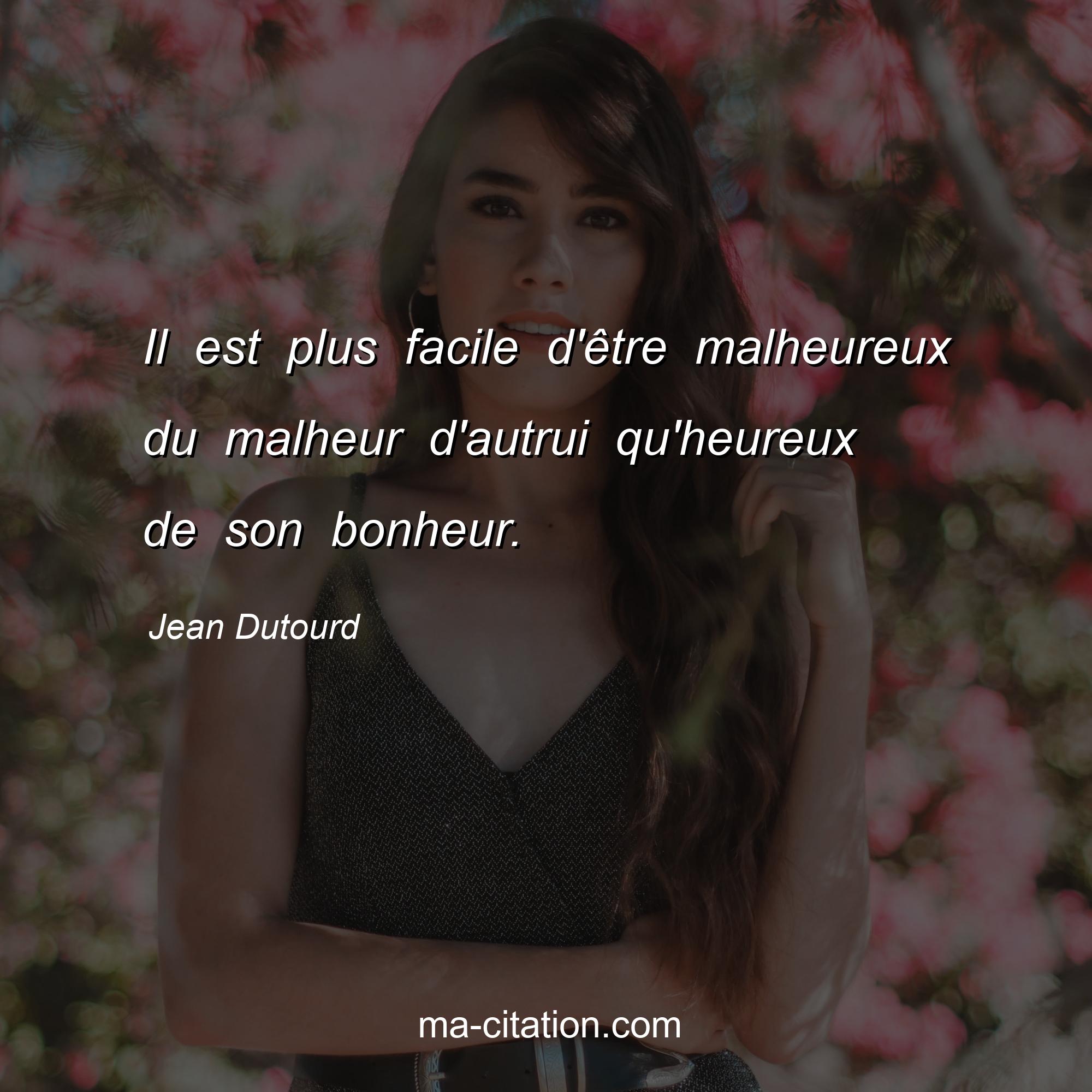 Jean Dutourd est l'auteur de la citation sur la vie "Il est plus facile d'être malheureux du malheur d'autrui qu'heureux de son bonheur.".