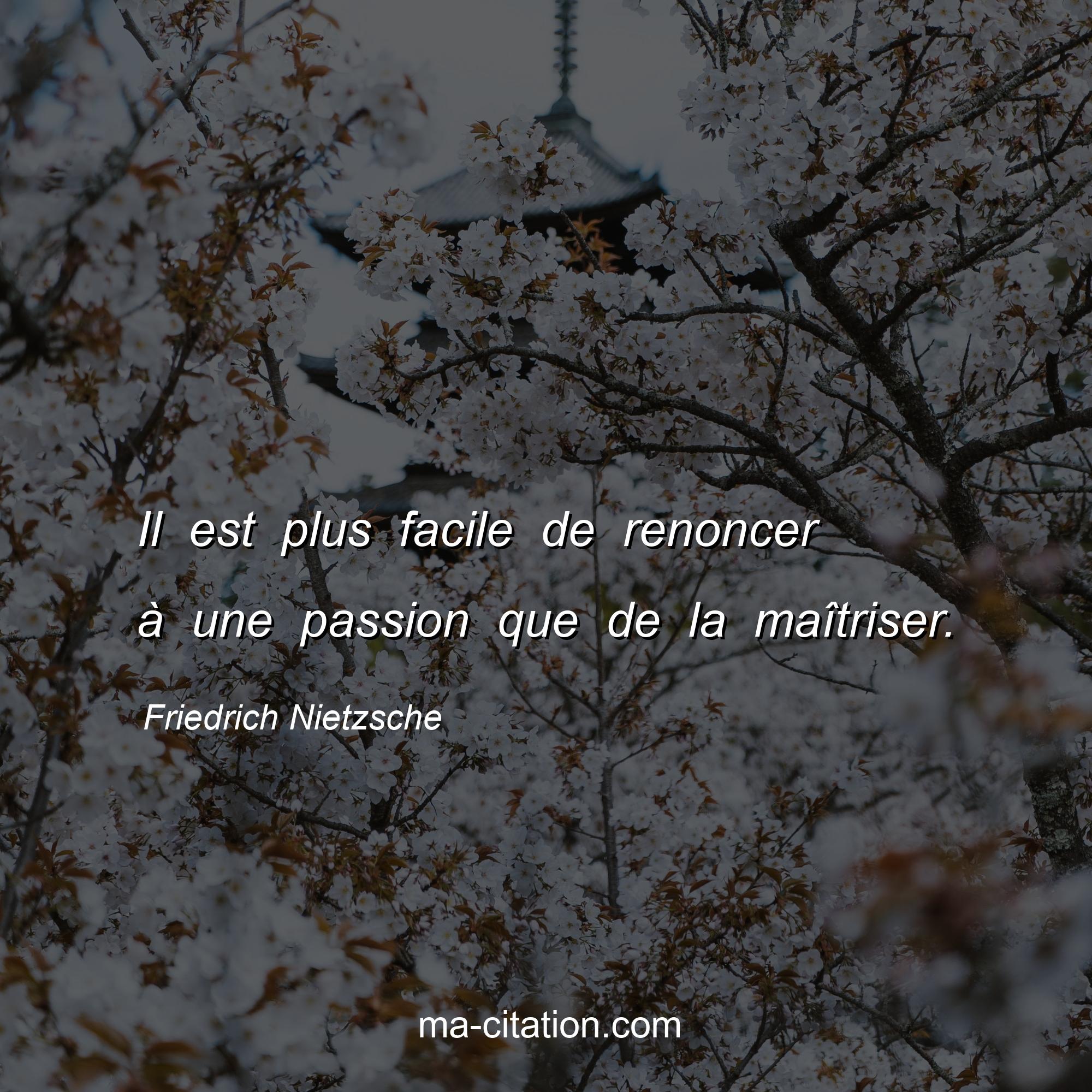 Citation sur la vie de Friedrich Nietzsche :Il est plus facile de renoncer à une passion que de la maîtriser.