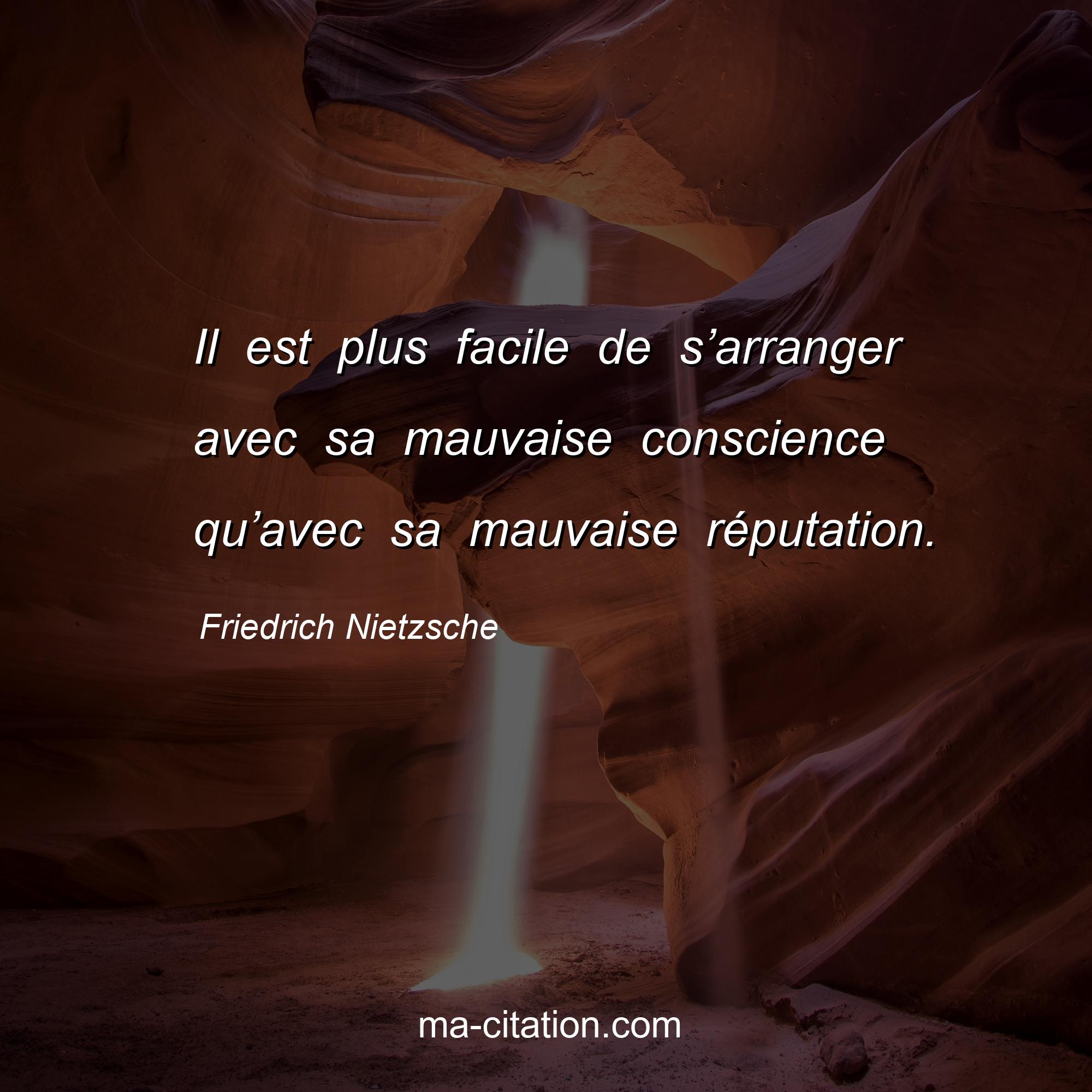 Citation sur la vie de Friedrich Nietzsche :Il est plus facile de s’arranger avec sa mauvaise conscience qu’avec sa mauvaise réputation.