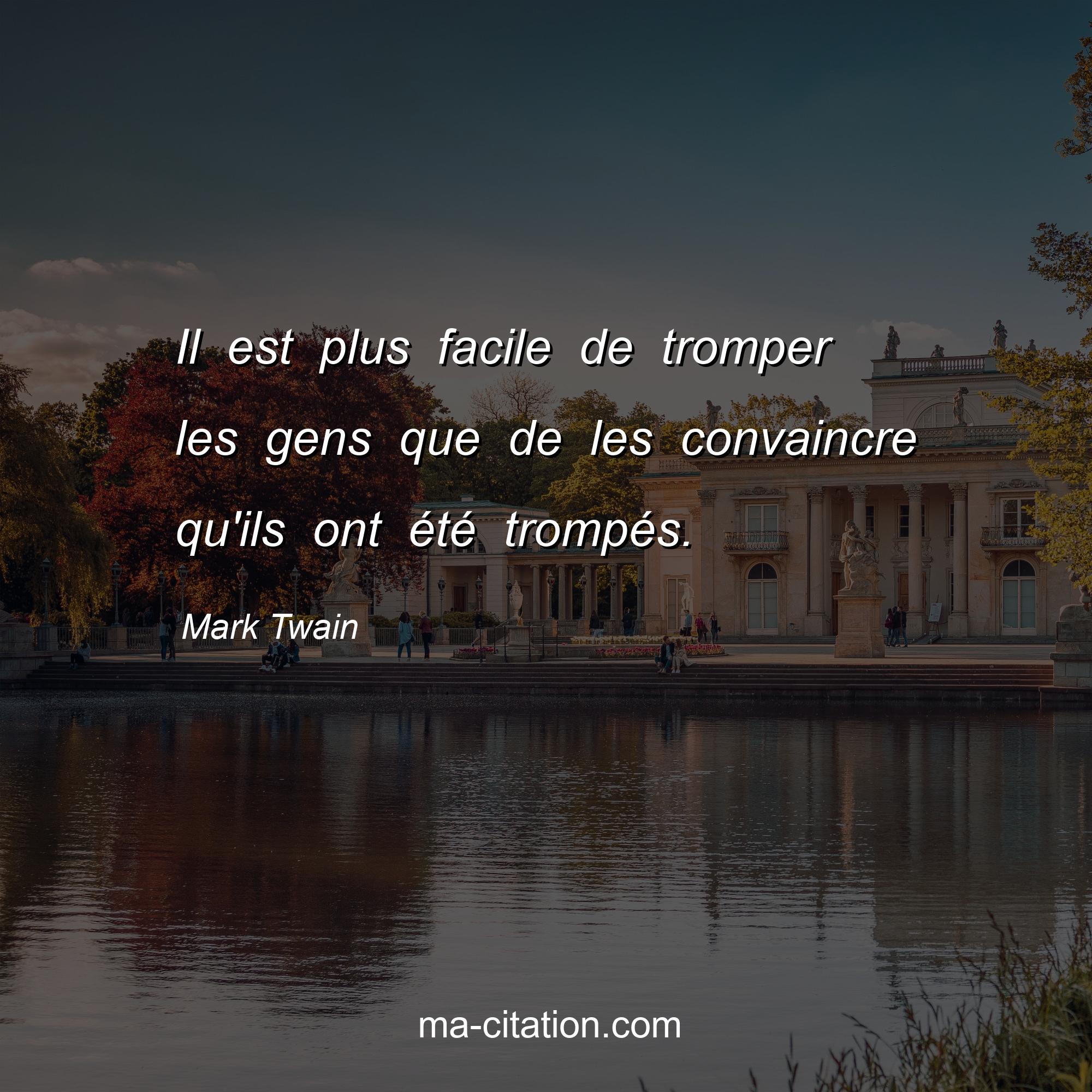 Citation sur la vie de Mark Twain :Il est plus facile de tromper les gens que de les convaincre qu'ils ont été trompés.