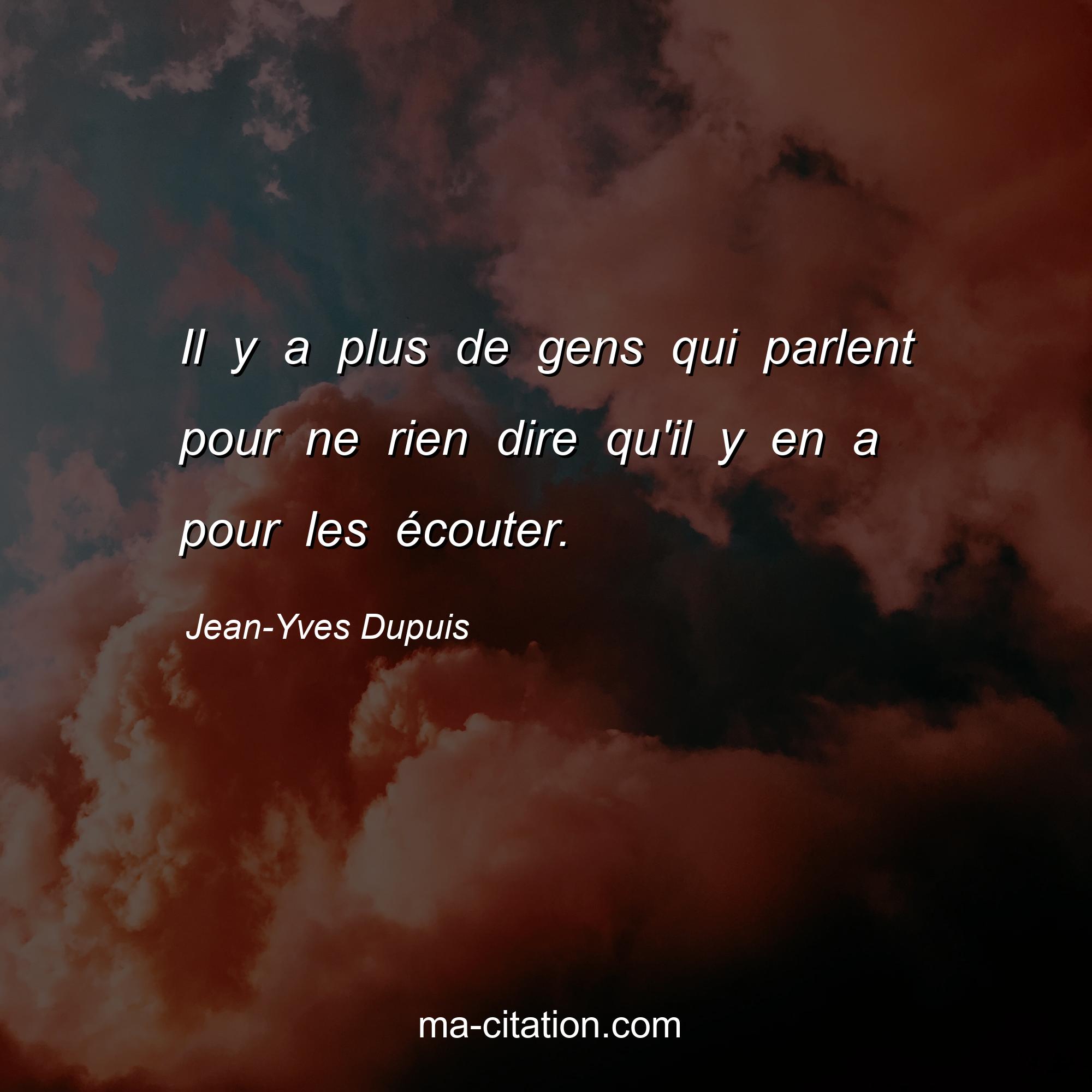 Jean-Yves Dupuis est l'auteur de la citation sur la vie "Il y a plus de gens qui parlent pour ne rien dire qu'il y en a pour les écouter.".