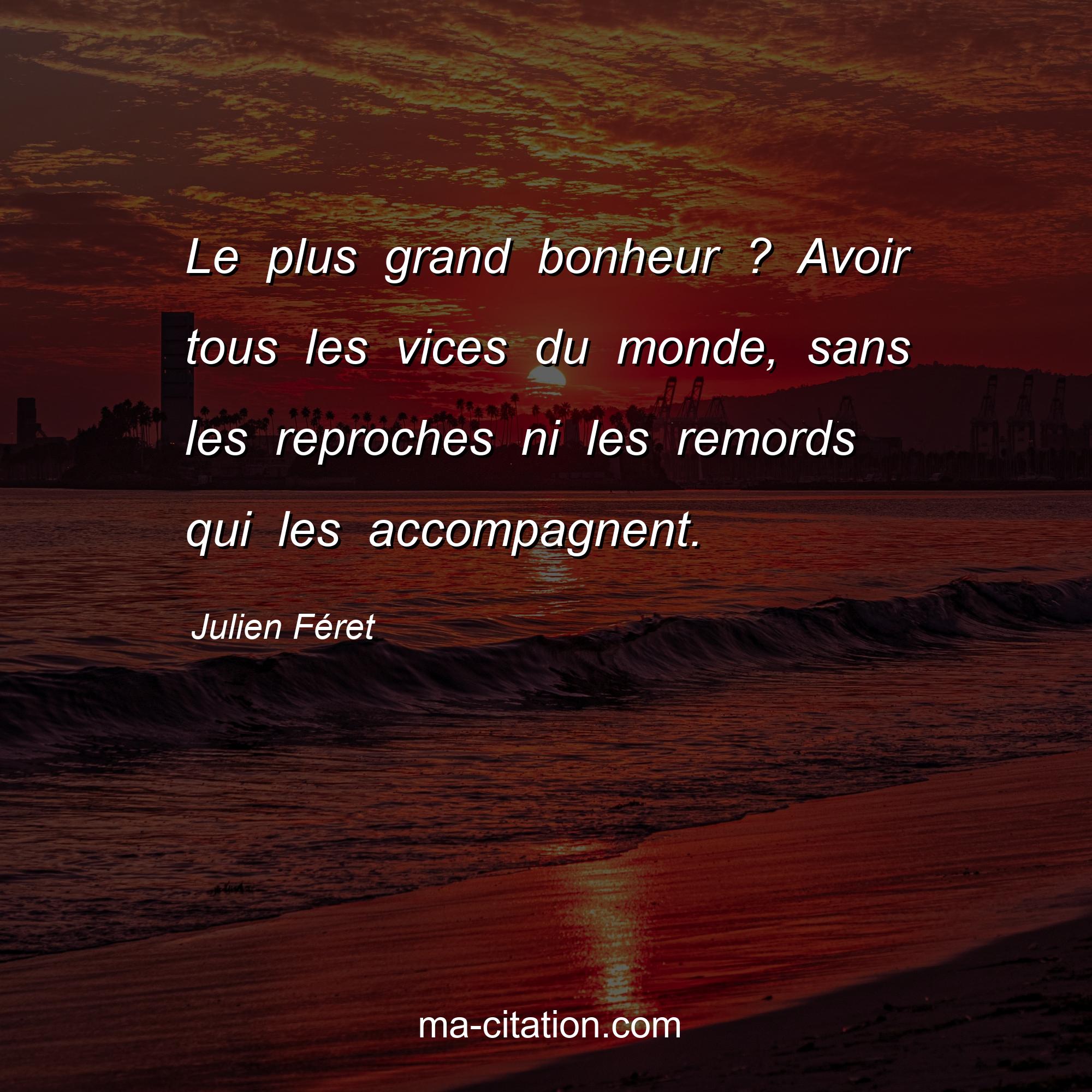 Julien Féret est l'auteur de la citation sur la vie "Le plus grand bonheur ? Avoir tous les vices du monde, sans les reproches ni les remords qui les accompagnent.".