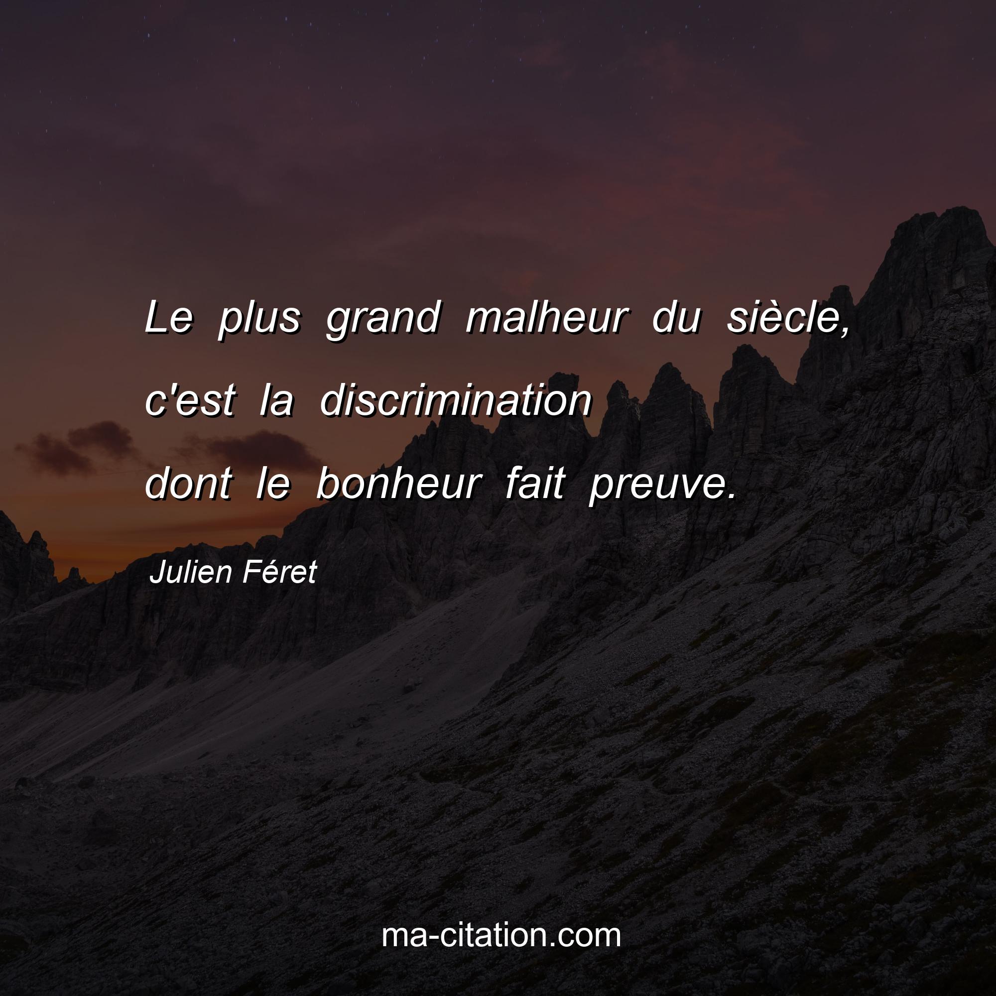 Citation sur la vie de Julien Féret :Le plus grand malheur du siècle, c'est la discrimination dont le bonheur fait preuve.