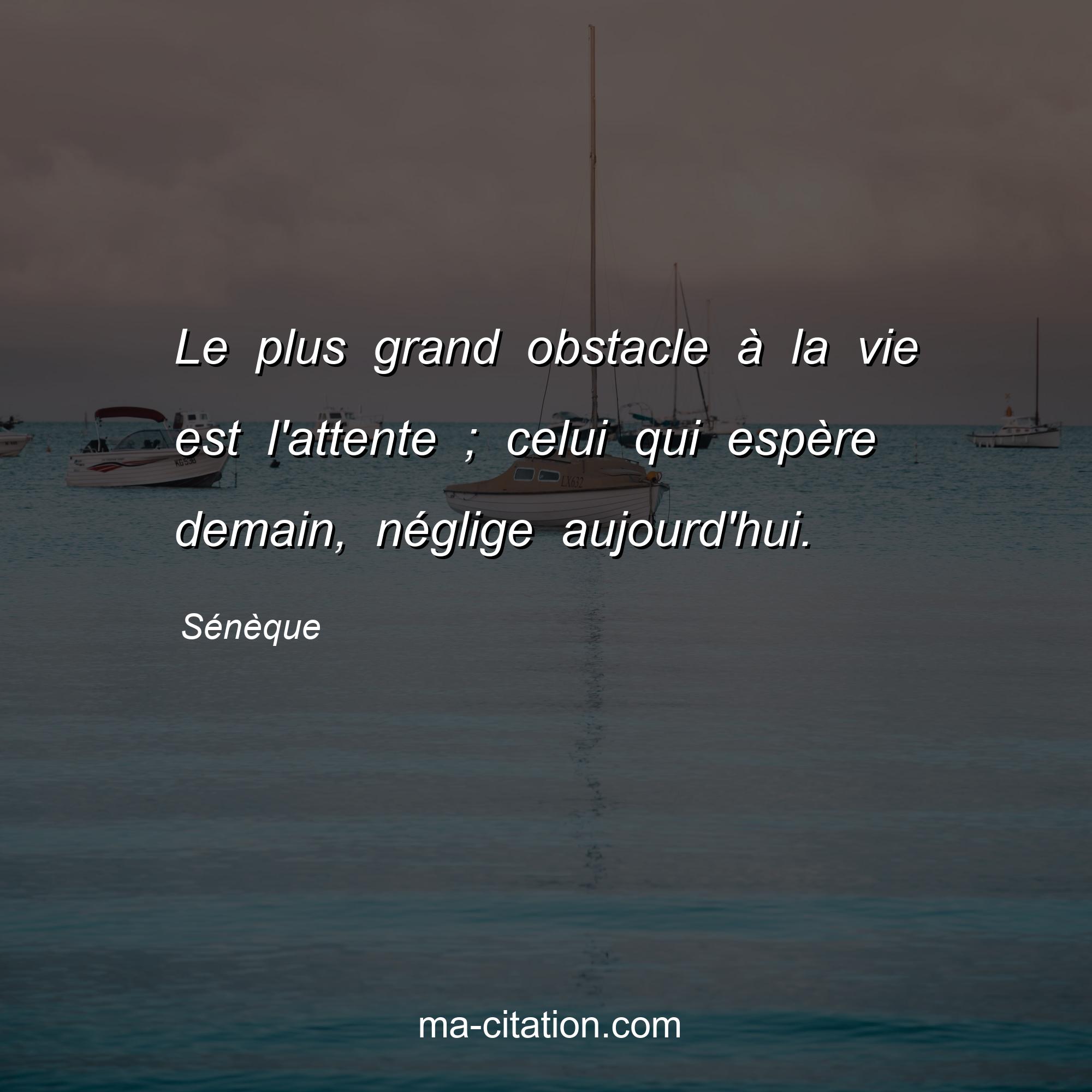 Citation sur la vie de Sénèque :Le plus grand obstacle à la vie est l'attente ; celui qui espère demain, néglige aujourd'hui.