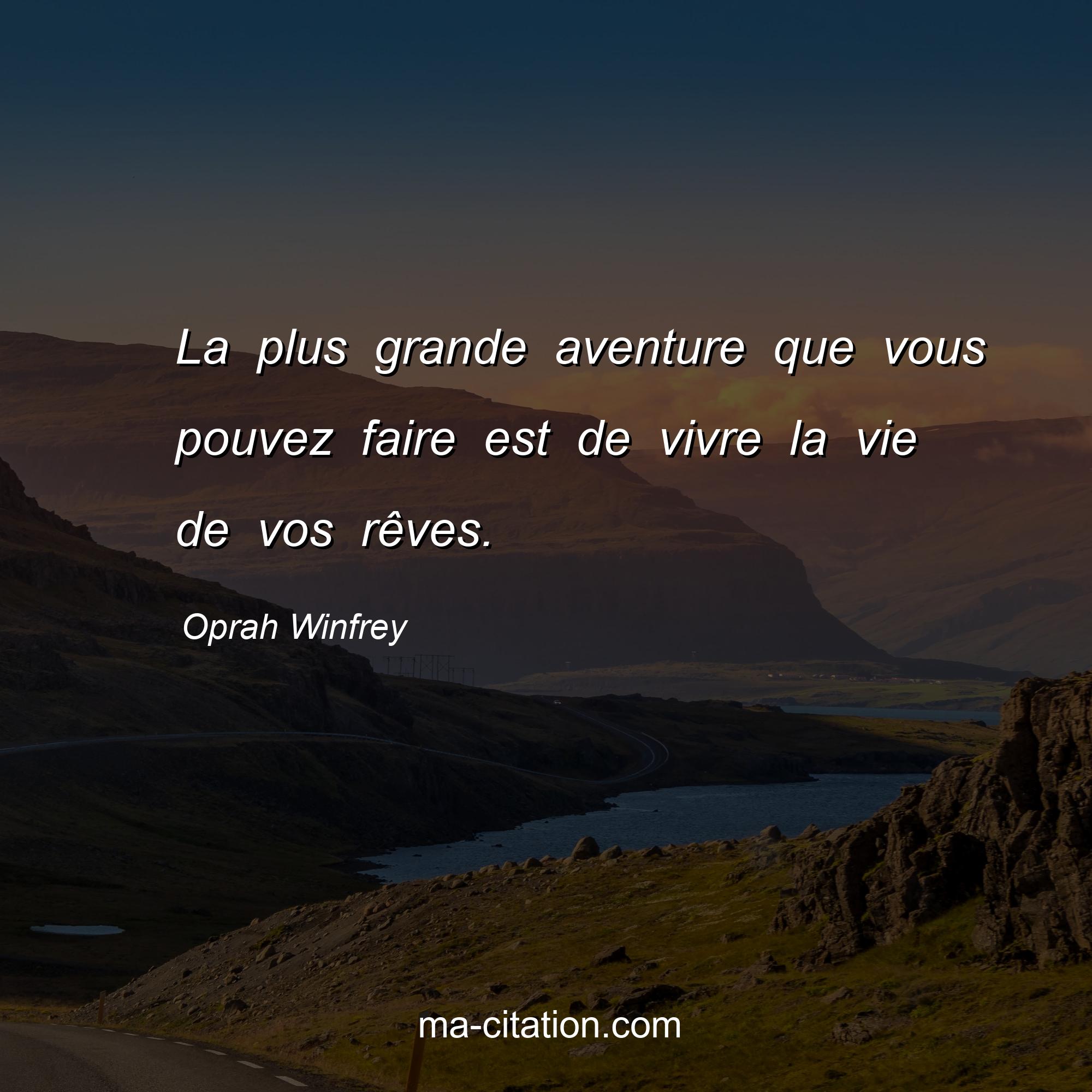 Oprah Winfrey est l'auteur de la citation sur la vie "La plus grande aventure que vous pouvez faire est de vivre la vie de vos rêves.".
