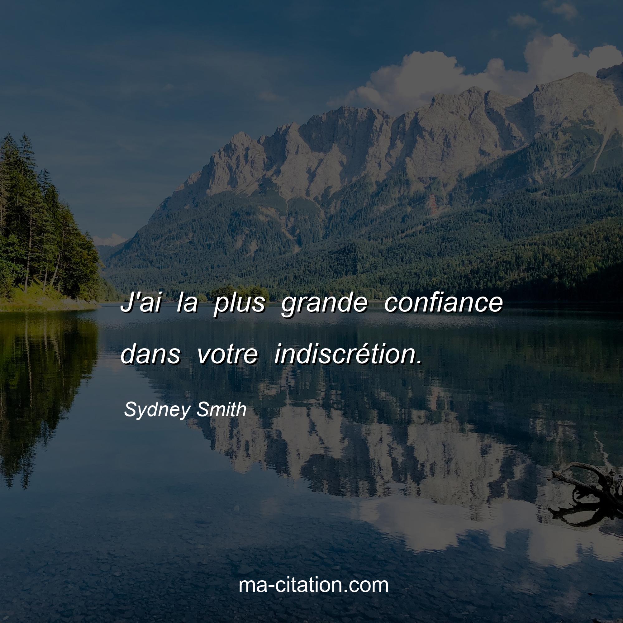 Citation sur la vie de Sydney Smith :J'ai la plus grande confiance dans votre indiscrétion.