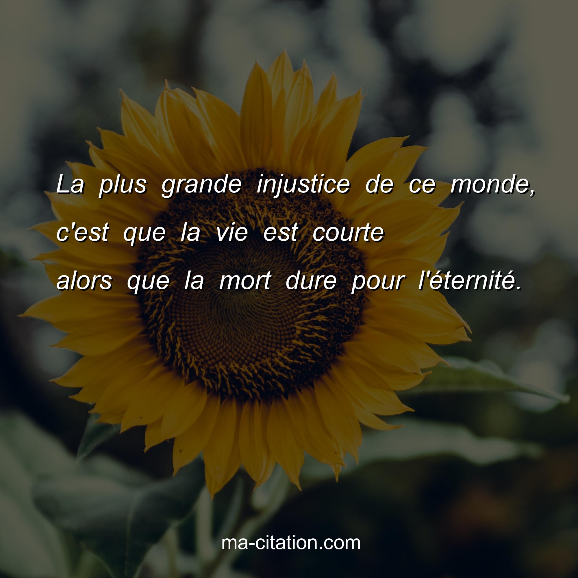 La plus grande injustice de ce monde, c'est que la vie est courte alors que la mort dure pour l'éternité.