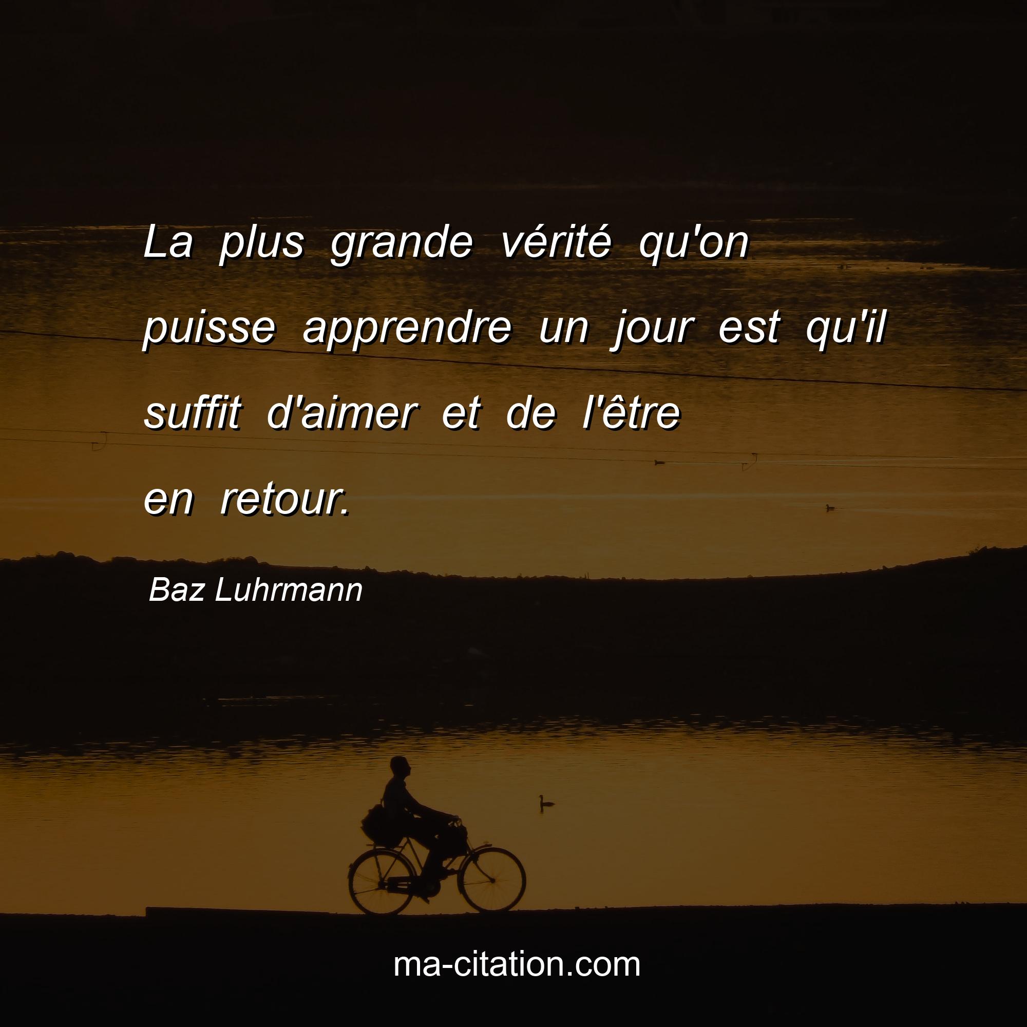 Citation sur la vie de Baz Luhrmann :La plus grande vérité qu'on puisse apprendre un jour est qu'il suffit d'aimer et de l'être en retour.