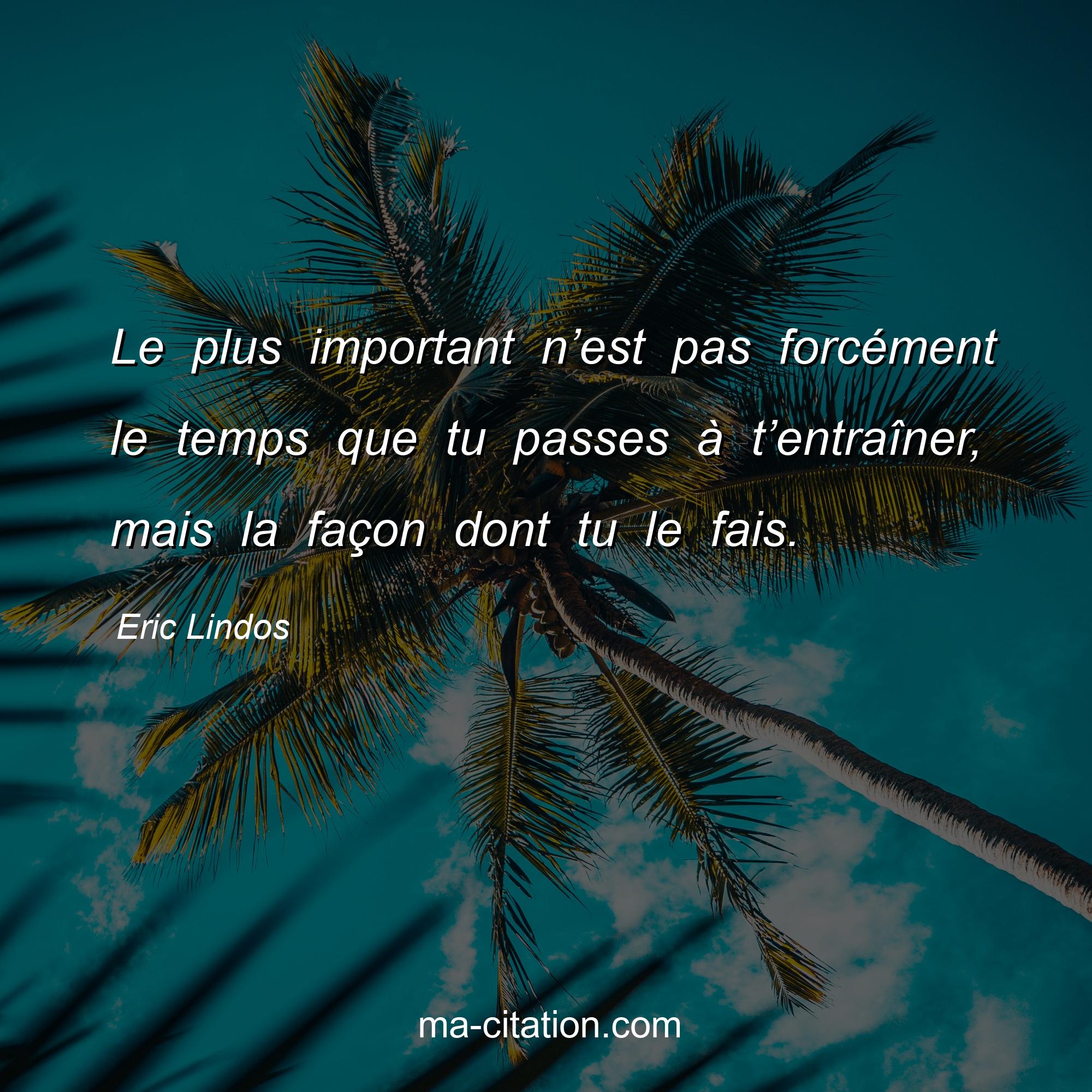 Citation sur la vie d'Eric Lindos :Le plus important n’est pas forcément le temps que tu passes à t’entraîner, mais la façon dont tu le fais.