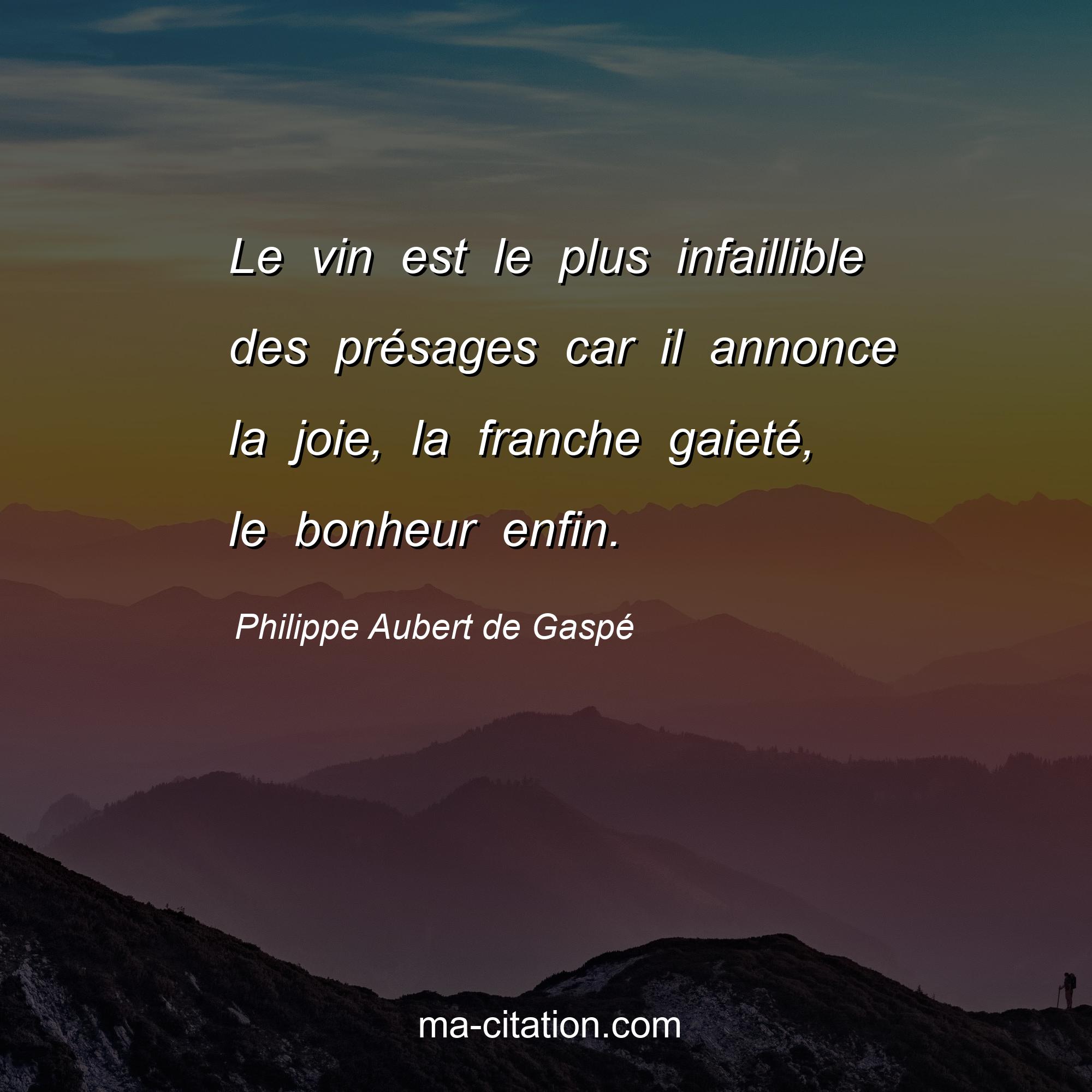 Citation sur la vie de Philippe Aubert de Gaspé :Le vin est le plus infaillible des présages car il annonce la joie, la franche gaieté, le bonheur enfin.