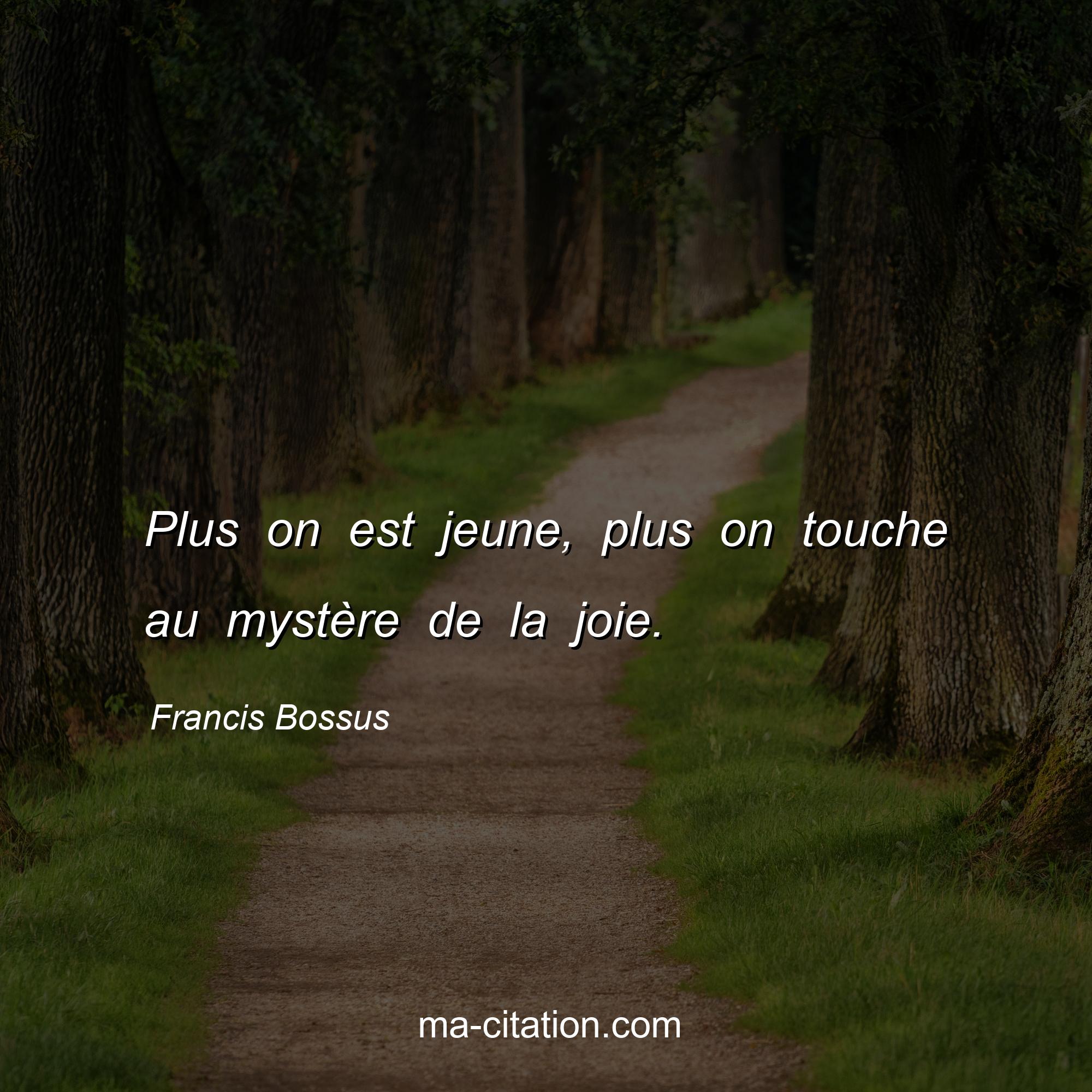 Francis Bossus est l'auteur de la citation sur la vie "Plus on est jeune, plus on touche au mystère de la joie.".