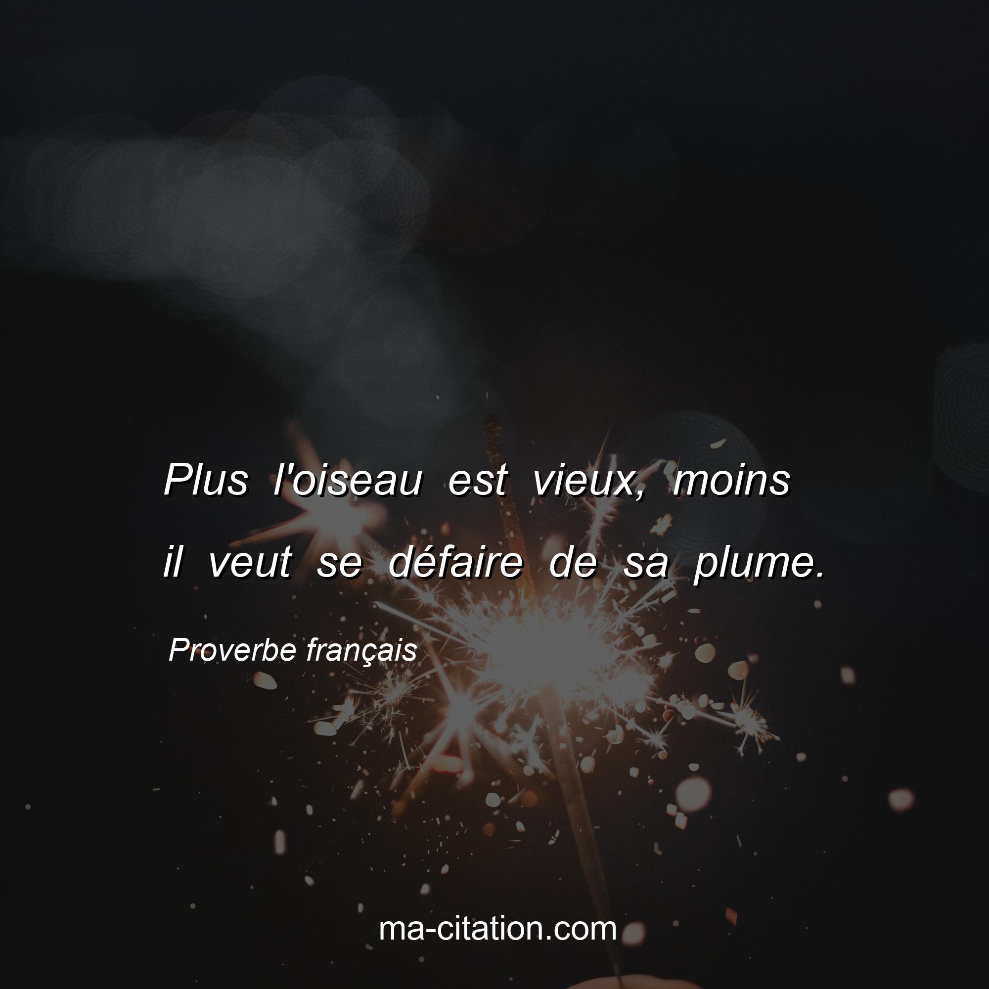 Proverbe français sur la vie :Plus l'oiseau est vieux, moins il veut se défaire de sa plume.