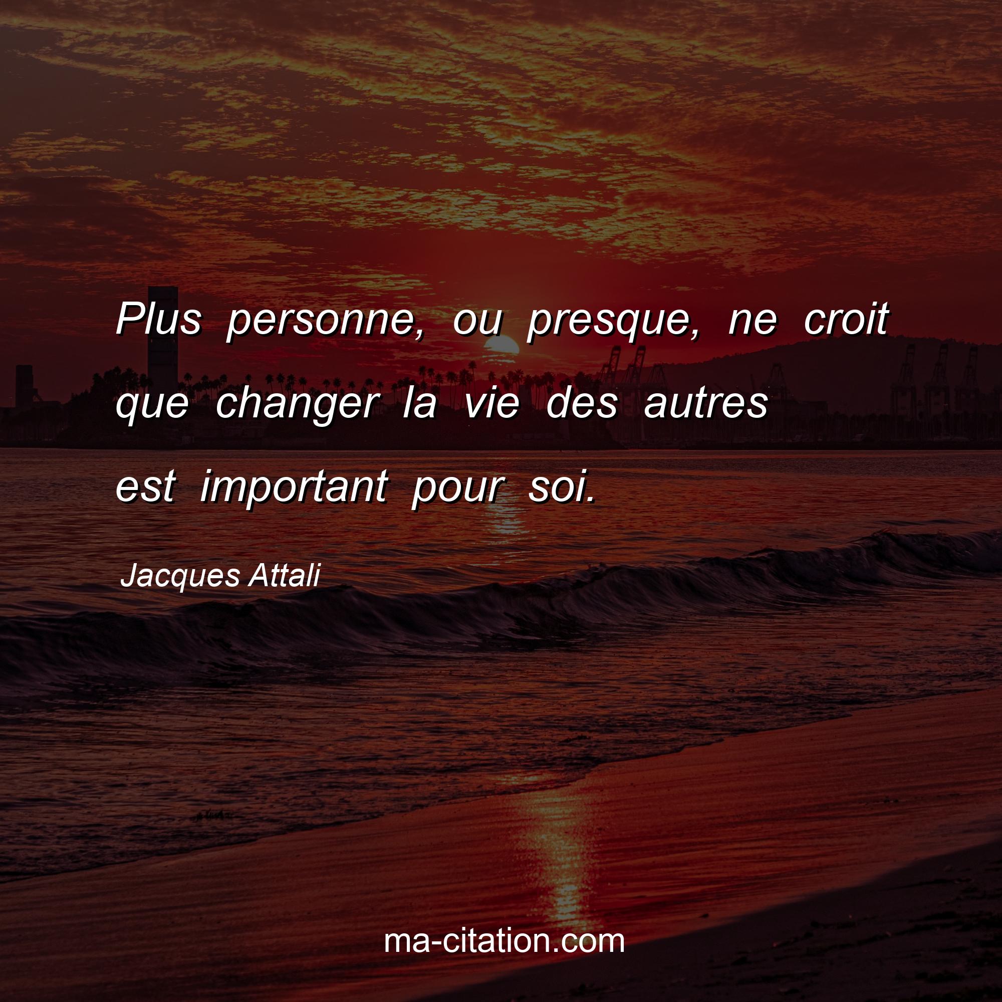 Citation sur la vie de Jacques Attali :Plus personne, ou presque, ne croit que changer la vie des autres est important pour soi.
