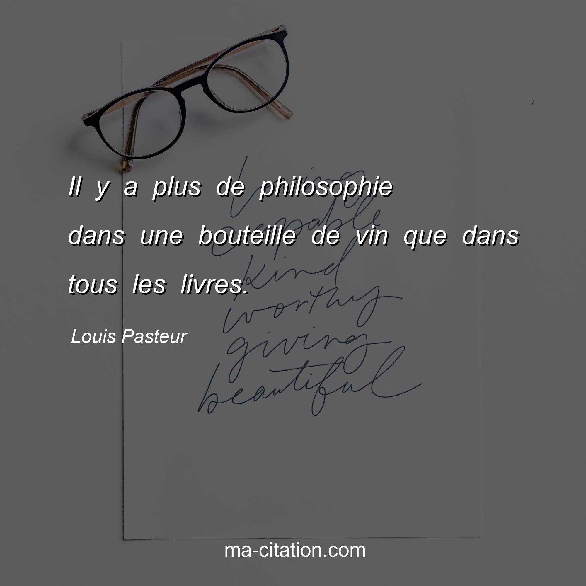 Citation sur la vie de Louis Pasteur :Il y a plus de philosophie dans une bouteille de vin que dans tous les livres.