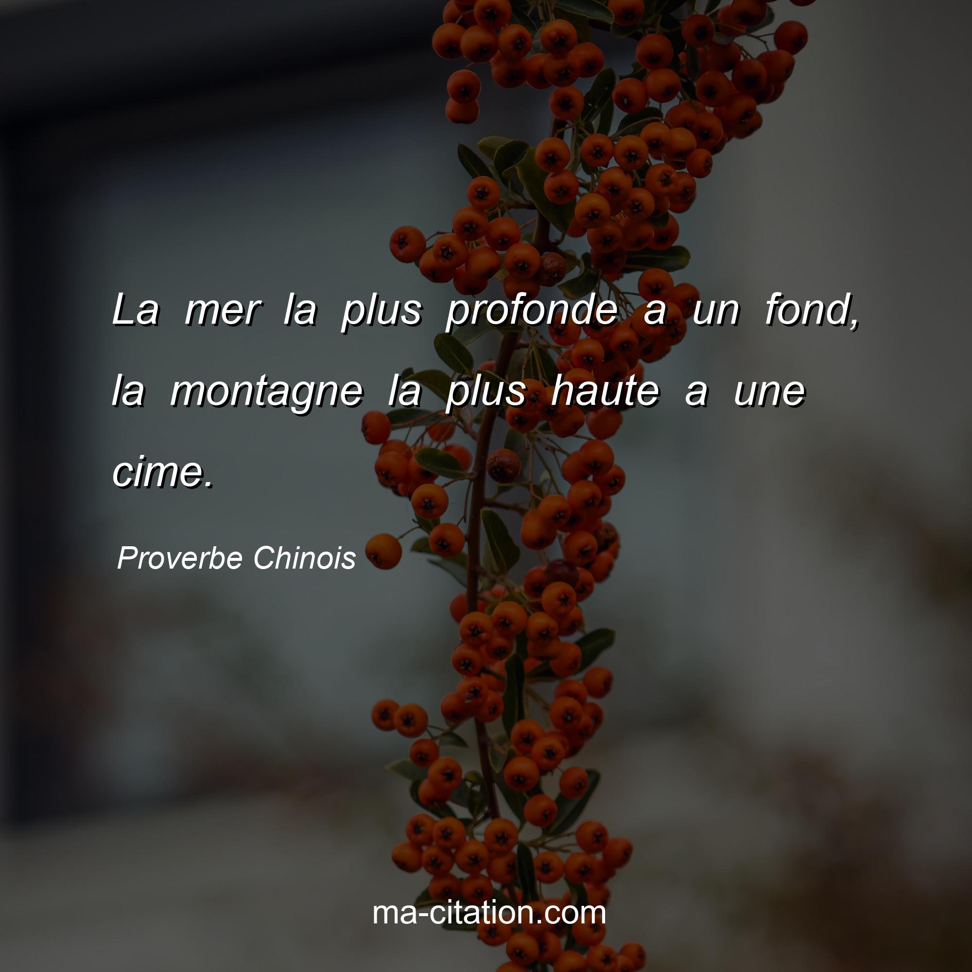 Proverbe Chinois sur la vie :La mer la plus profonde a un fond, la montagne la plus haute a une cime.