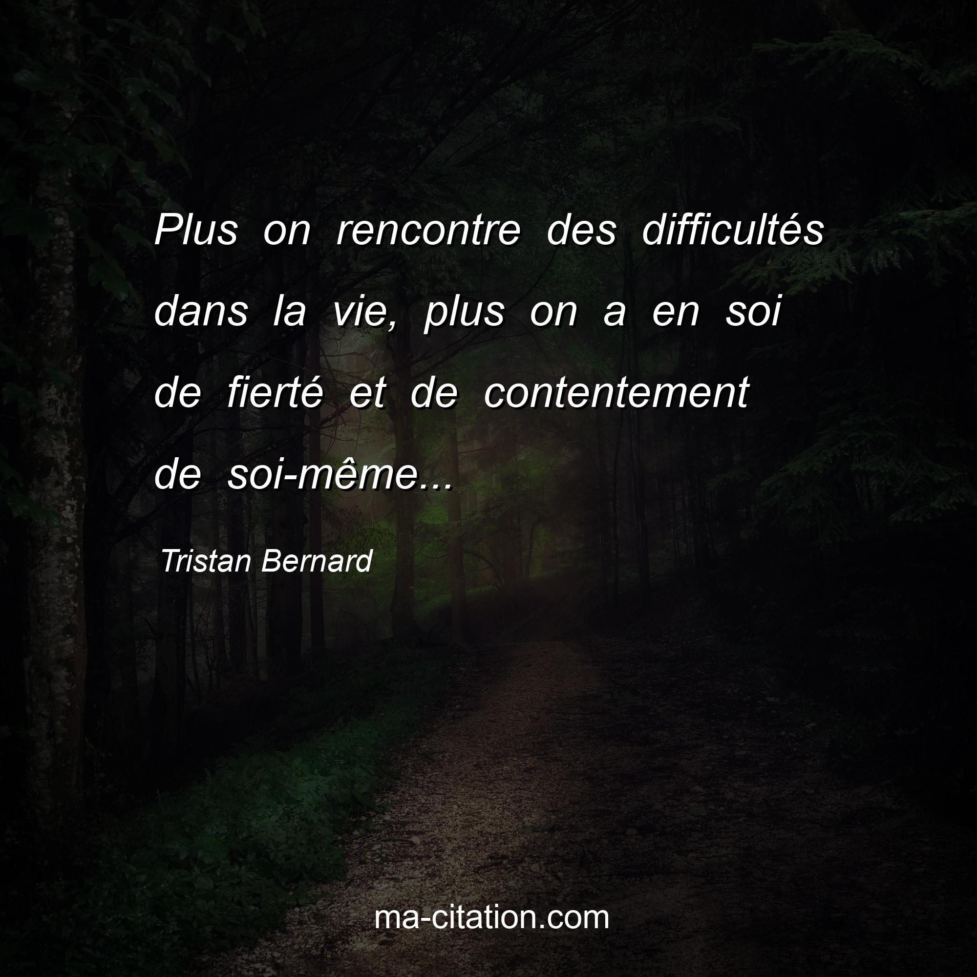 Citation sur la vie de Tristan Bernard :Plus on rencontre des difficultés dans la vie, plus on a en soi de fierté et de contentement de soi-même...