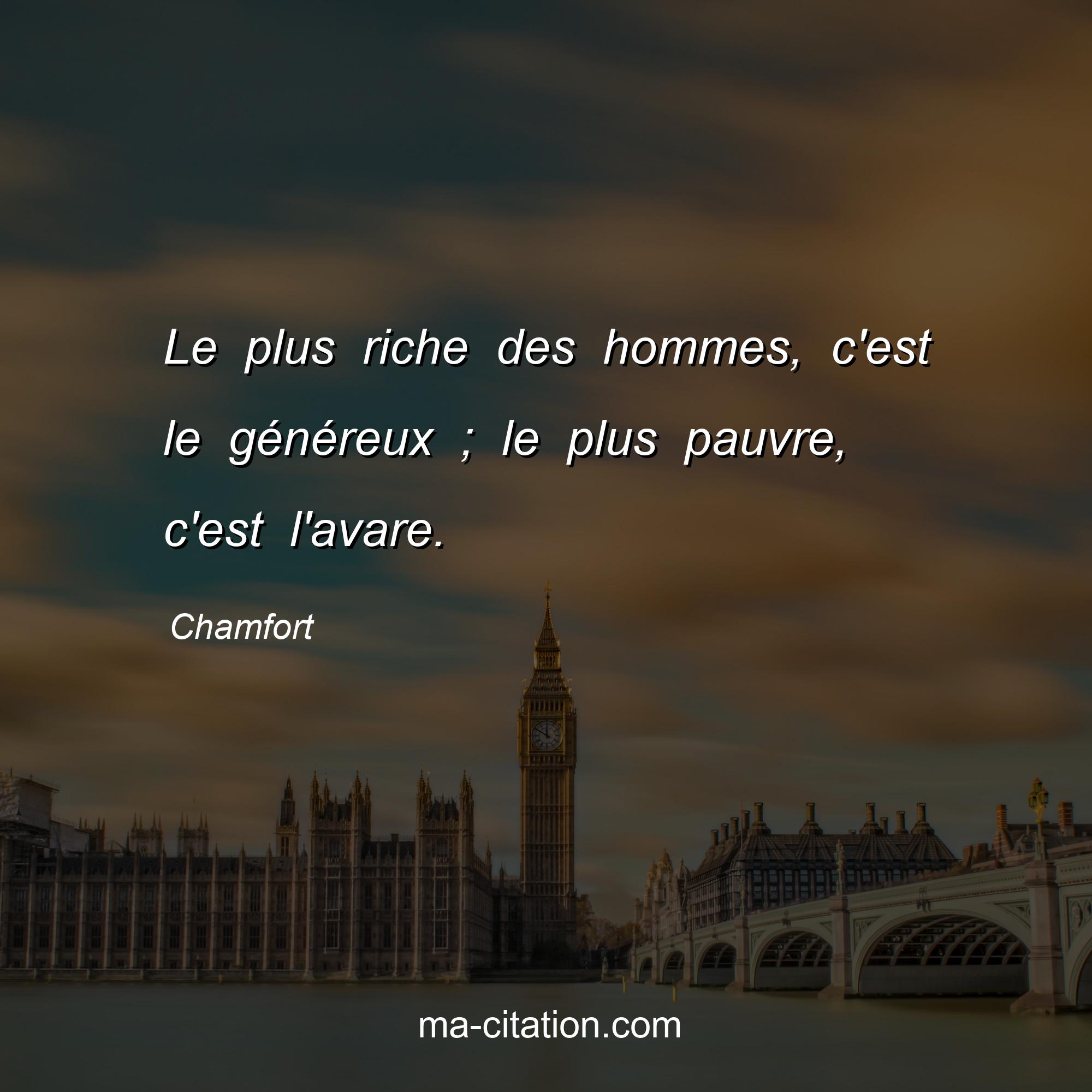 Citation sur la vie de Chamfort :Le plus riche des hommes, c'est le généreux ; le plus pauvre, c'est l'avare.
