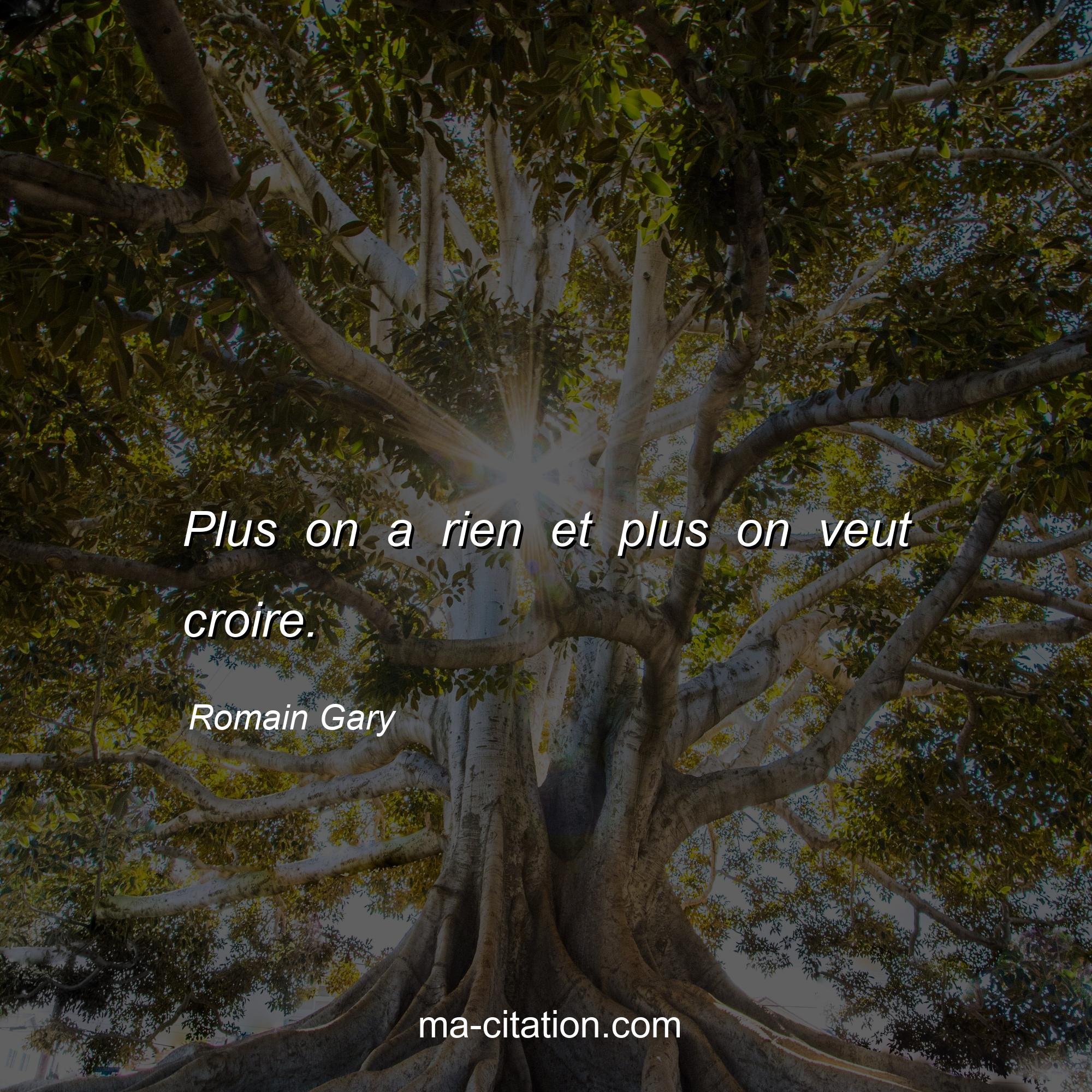 Citation sur la vie de Romain Gary :Plus on a rien et plus on veut croire.