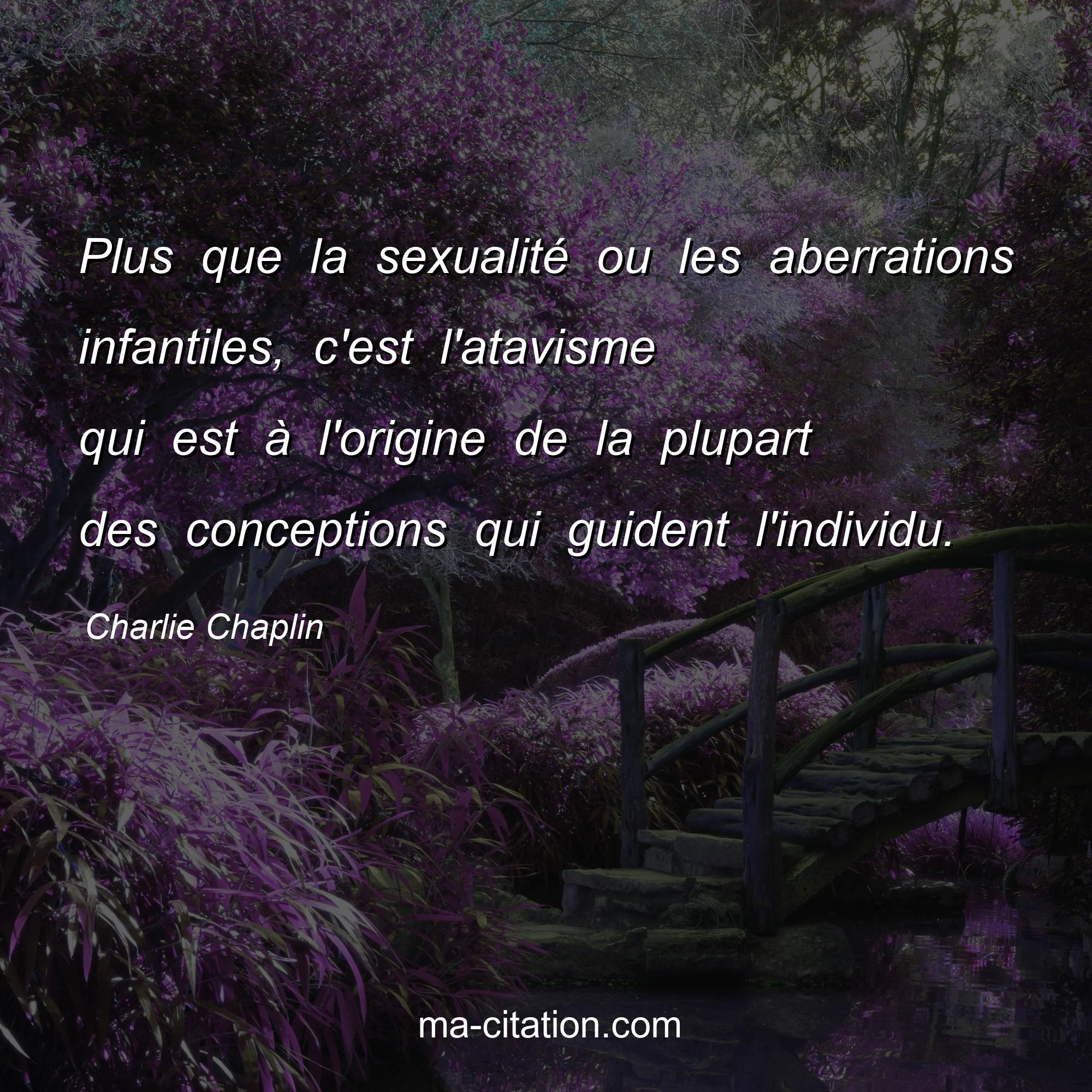 Citation sur la vie de Charlie Chaplin :Plus que la sexualité ou les aberrations infantiles, c'est l'atavisme qui est à l'origine de la plupart des conceptions qui guident l'individu.