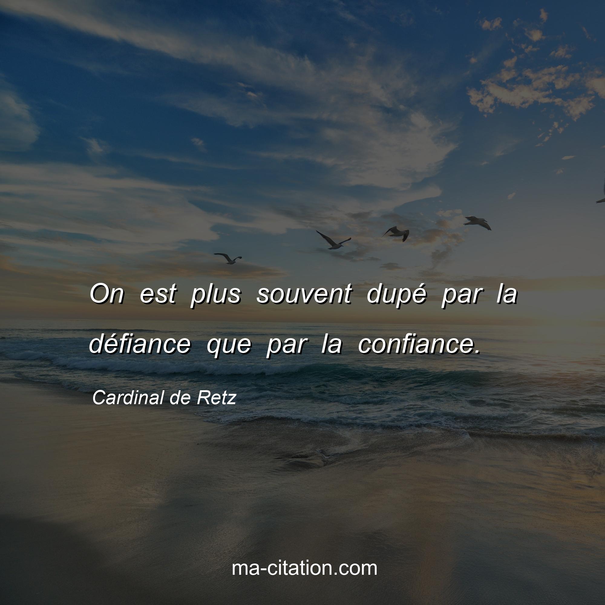 Cardinal de Retz est l'auteur de la citation sur la vie "On est plus souvent dupé par la défiance que par la confiance.".