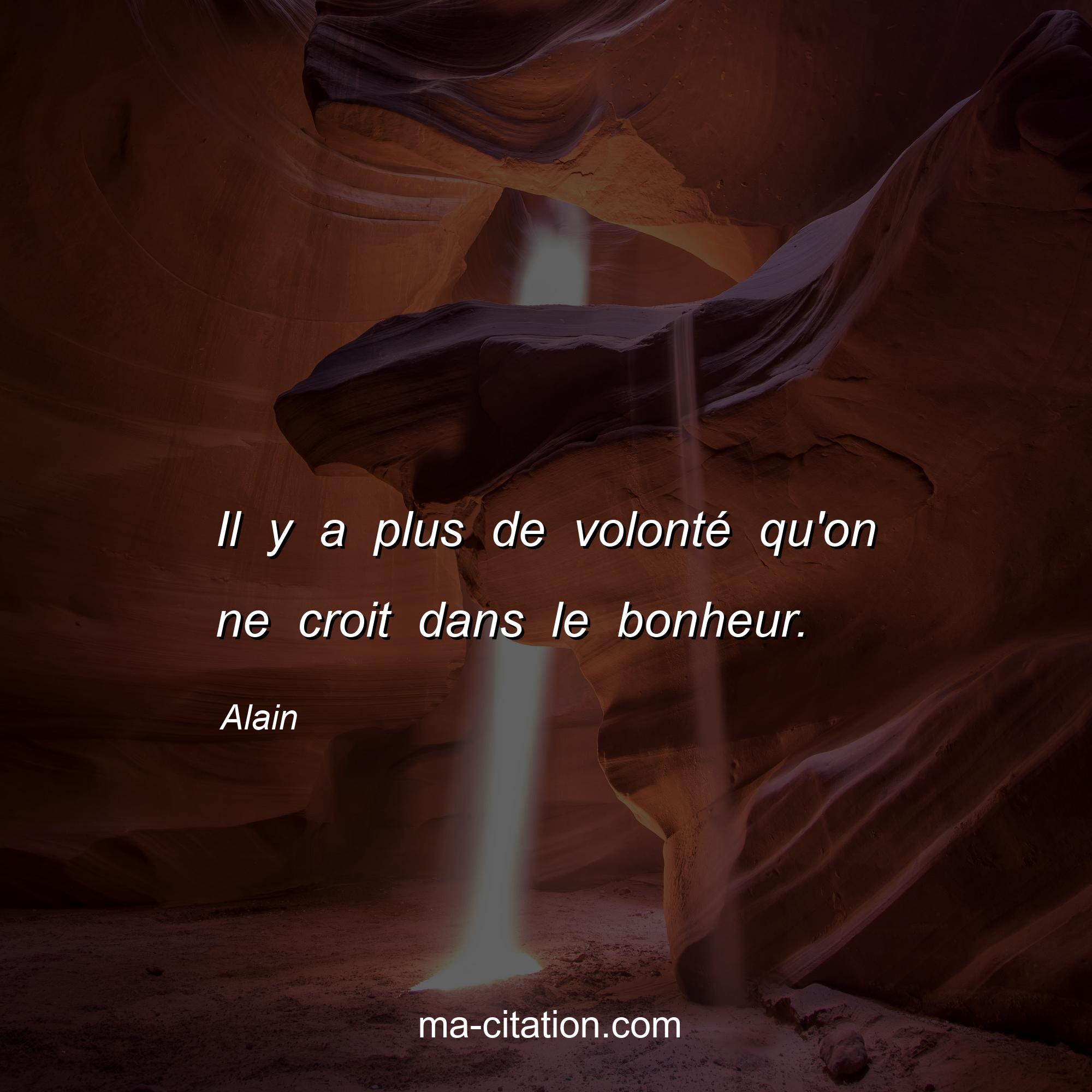 Alain est l'auteur de la citation sur la vie "Il y a plus de volonté qu'on ne croit dans le bonheur.".
