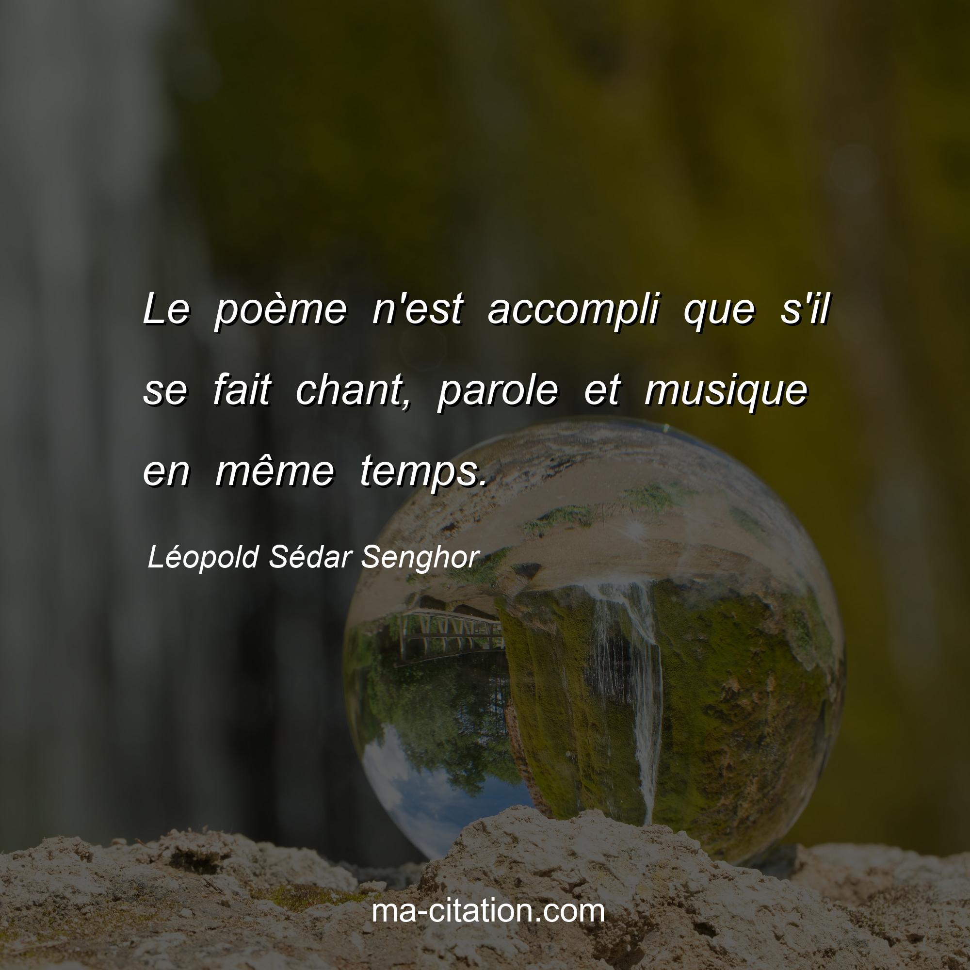 Citation sur la vie de Léopold Sédar Senghor :Le poème n'est accompli que s'il se fait chant, parole et musique en même temps.