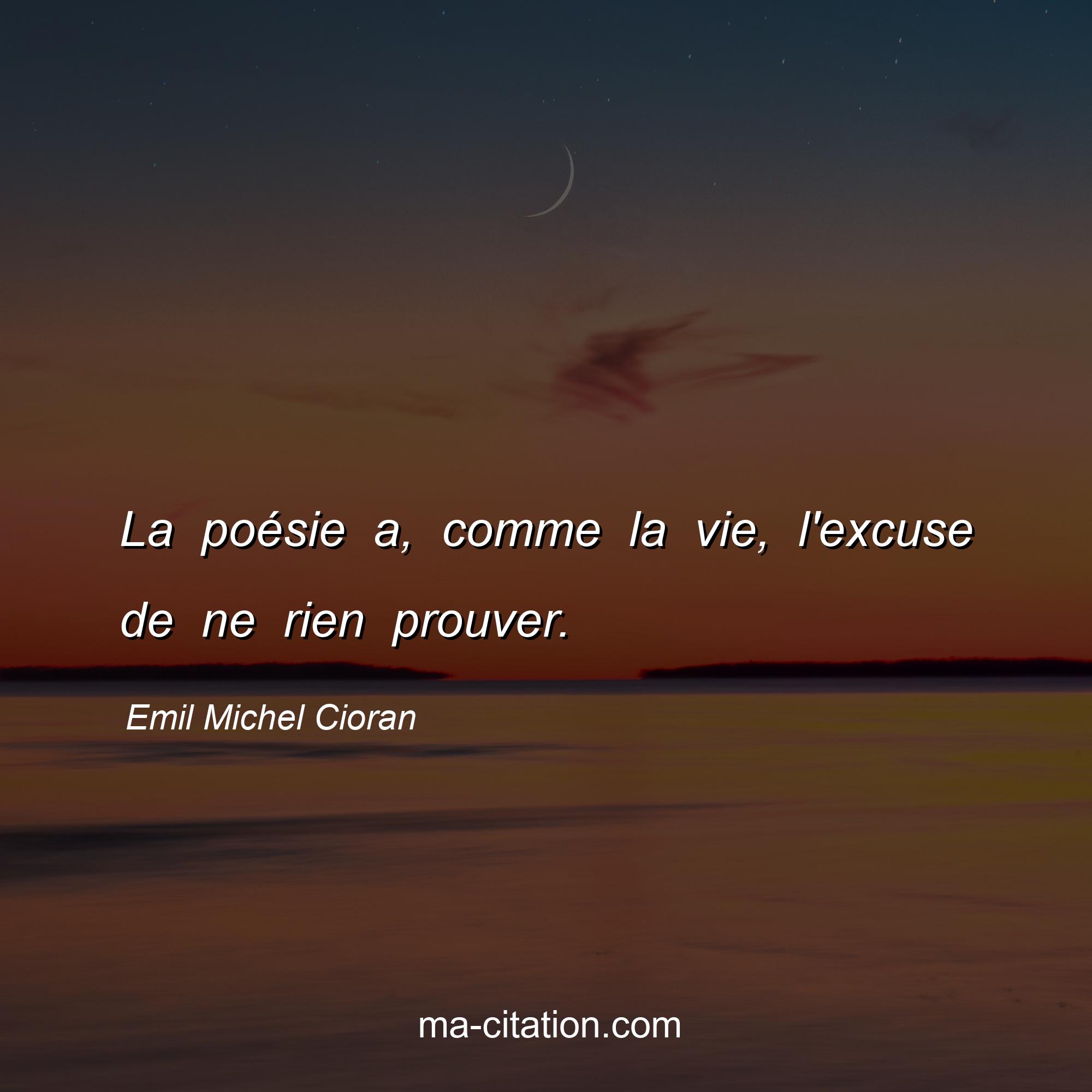 Citation sur la vie d'Emil Michel Cioran :La poésie a, comme la vie, l'excuse de ne rien prouver.
