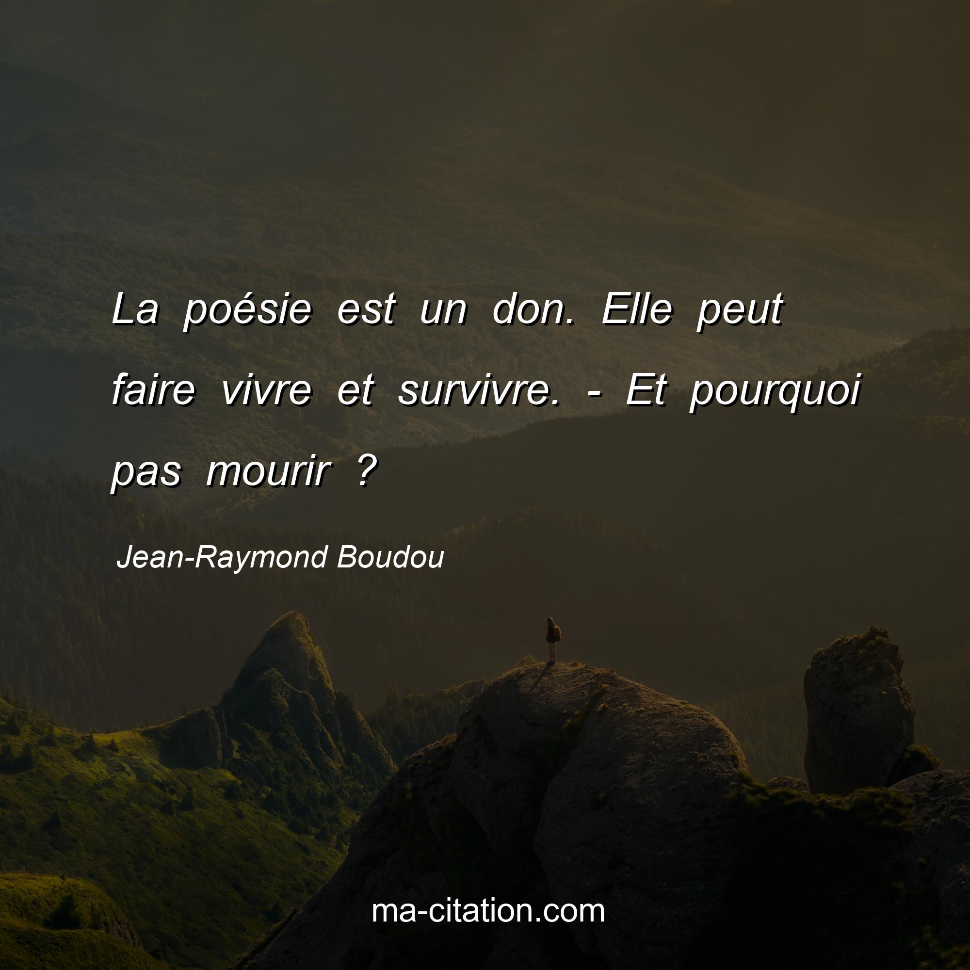 Jean-Raymond Boudou est l'auteur de la citation sur la vie "La poésie est un don. Elle peut faire vivre et survivre. - Et pourquoi pas mourir ?".