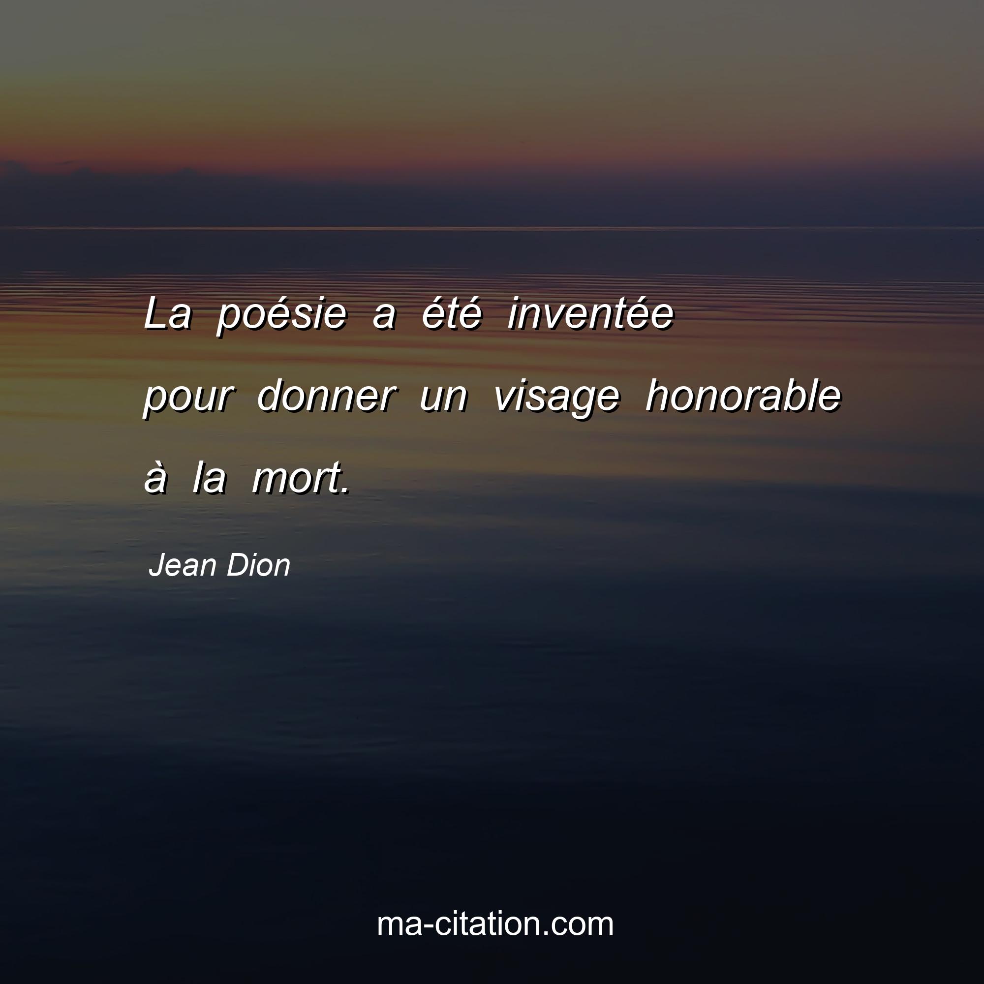 Jean Dion est l'auteur de la citation sur la vie "La poésie a été inventée pour donner un visage honorable à la mort.".