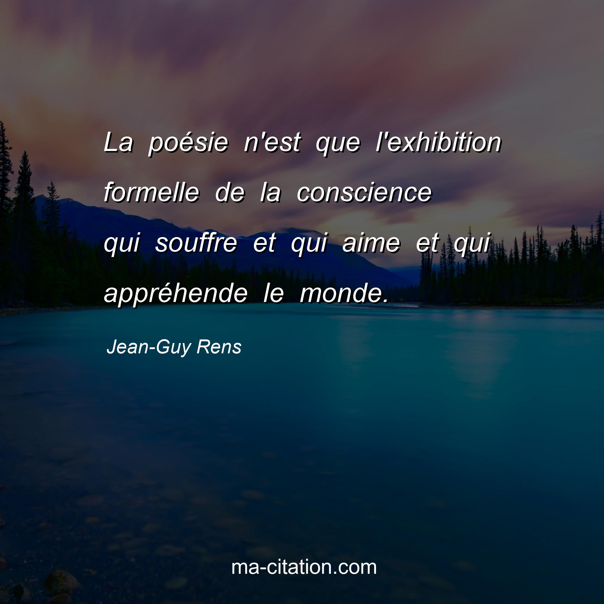 Jean-Guy Rens est l'auteur de la citation sur la vie "La poésie n'est que l'exhibition formelle de la conscience qui souffre et qui aime et qui appréhende le monde.".