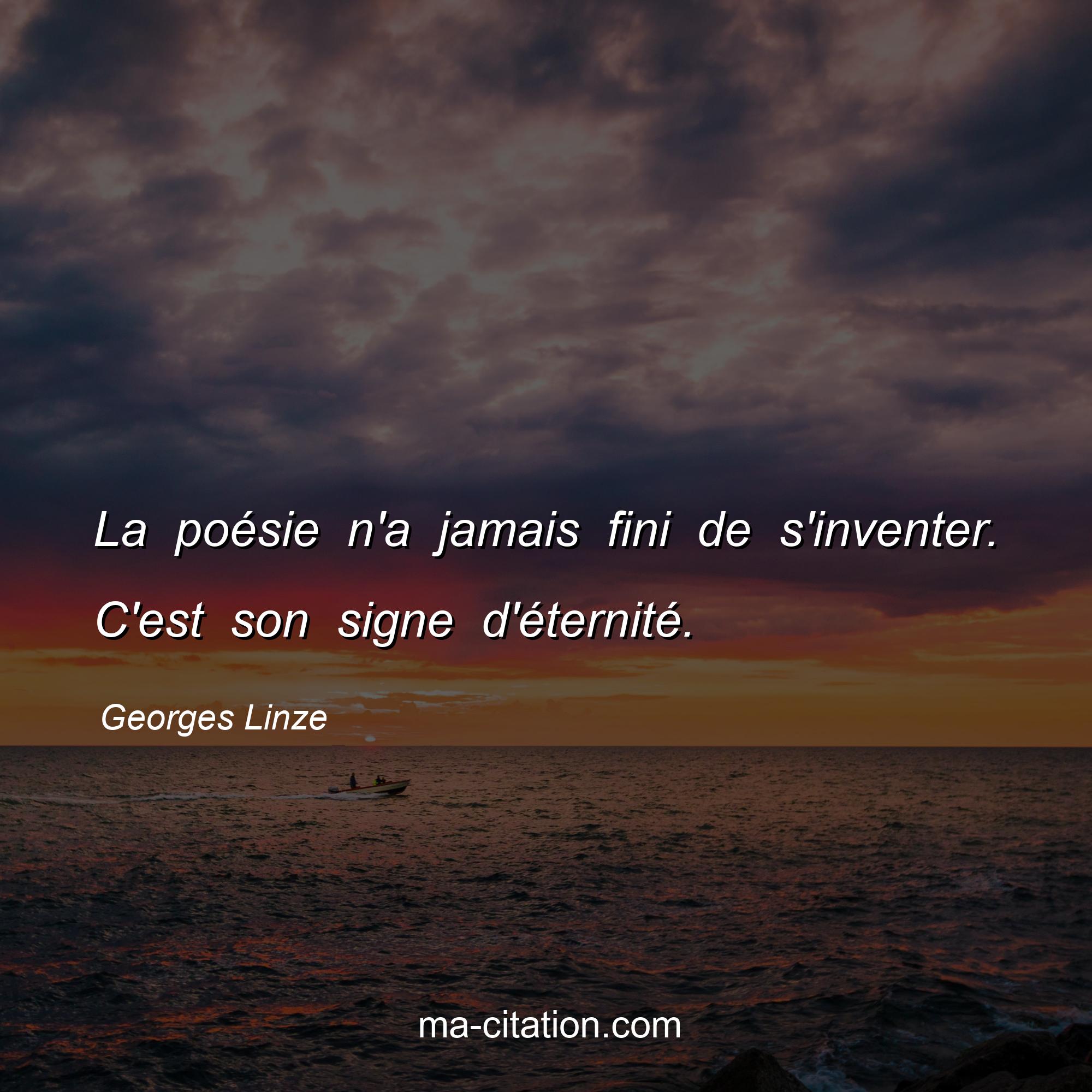 Georges Linze est l'auteur de la citation sur la vie "La poésie n'a jamais fini de s'inventer. C'est son signe d'éternité.".