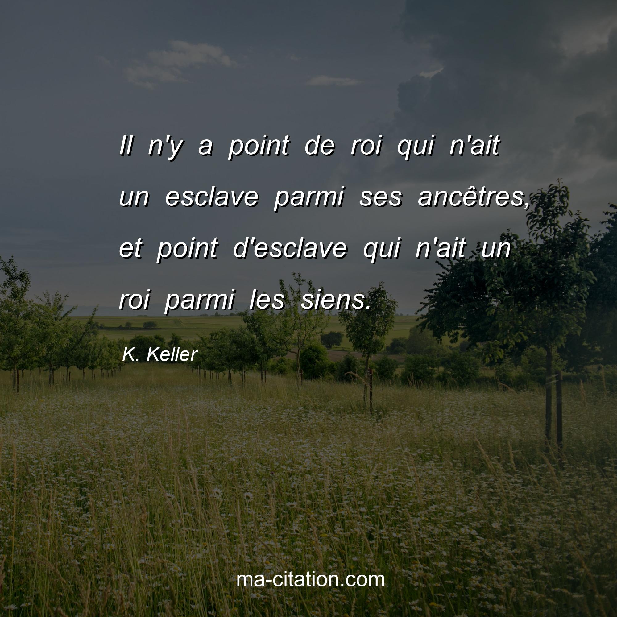K. Keller est l'auteur de la citation sur la vie "Il n'y a point de roi qui n'ait un esclave parmi ses ancêtres, et point d'esclave qui n'ait un roi parmi les siens.".