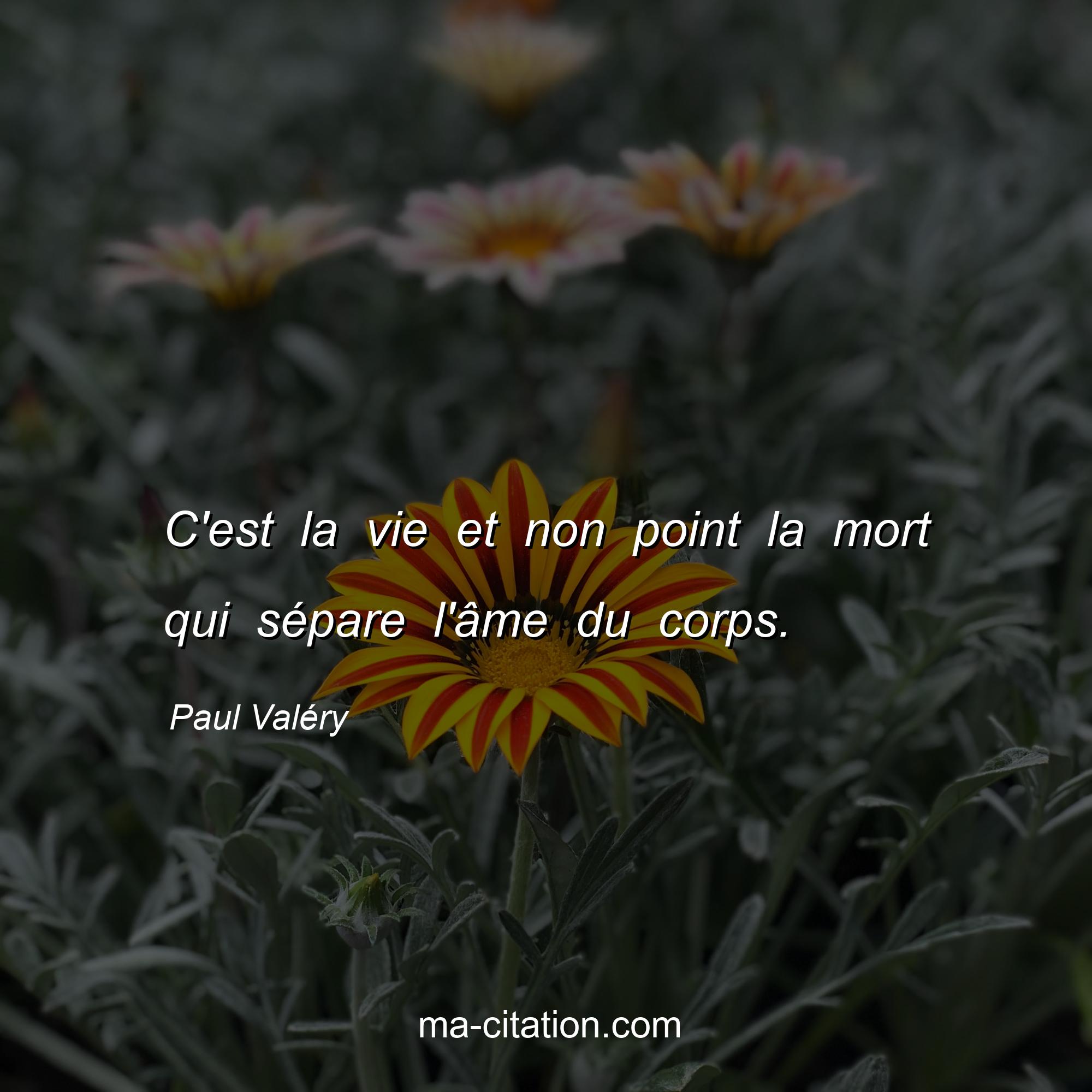Citation sur la vie de Paul Valéry :C'est la vie et non point la mort qui sépare l'âme du corps.