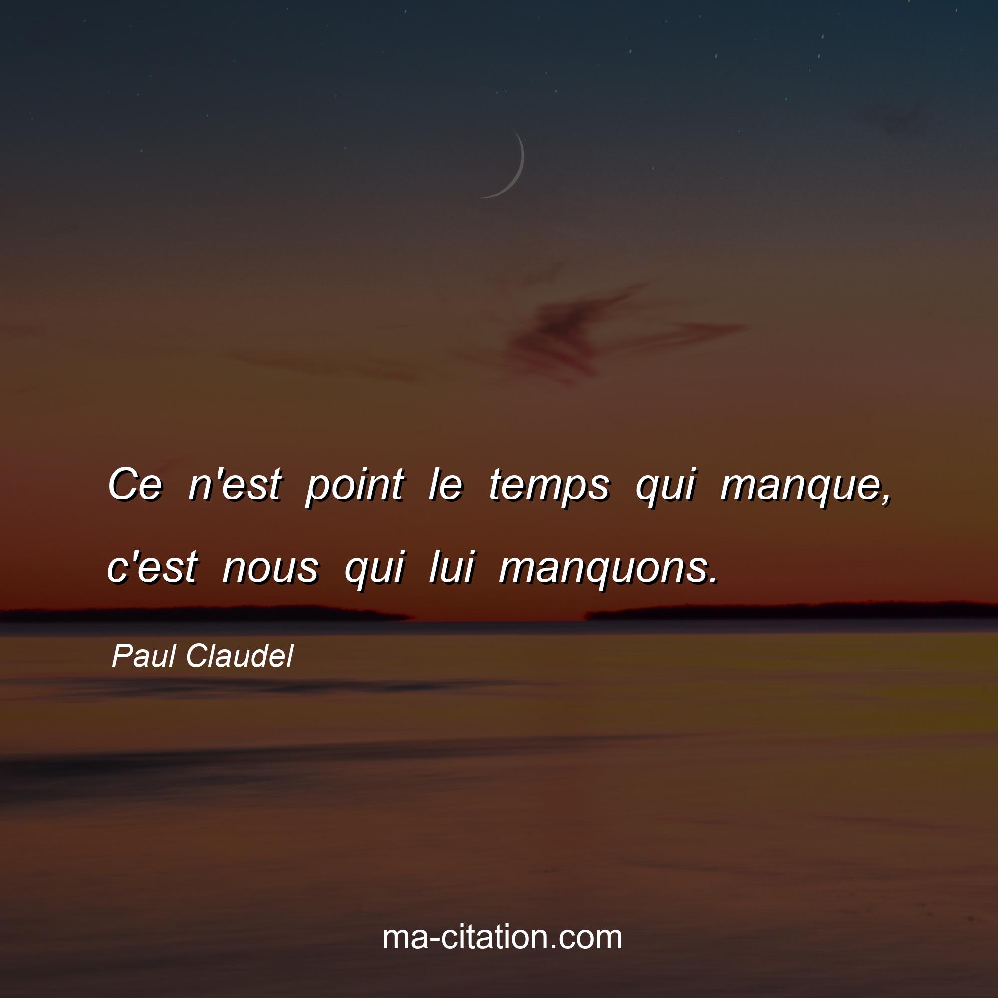 Citation sur la vie de Paul Claudel :Ce n'est point le temps qui manque, c'est nous qui lui manquons.