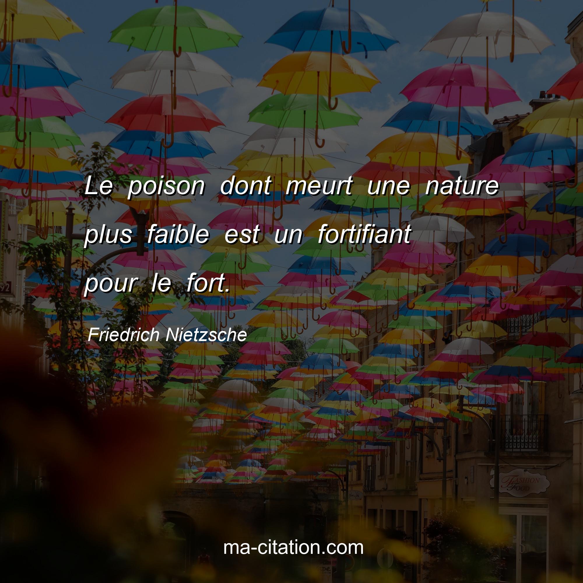 Citation sur la vie de Friedrich Nietzsche :Le poison dont meurt une nature plus faible est un fortifiant pour le fort.