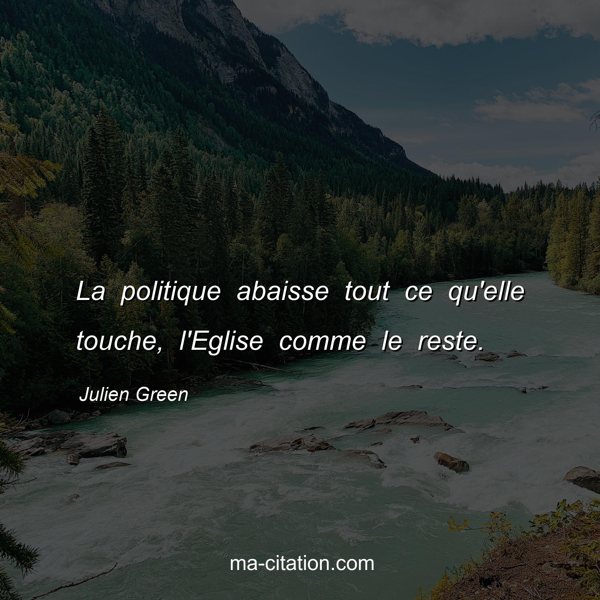 Citation sur la vie de Julien Green :La politique abaisse tout ce qu'elle touche, l'Eglise comme le reste.