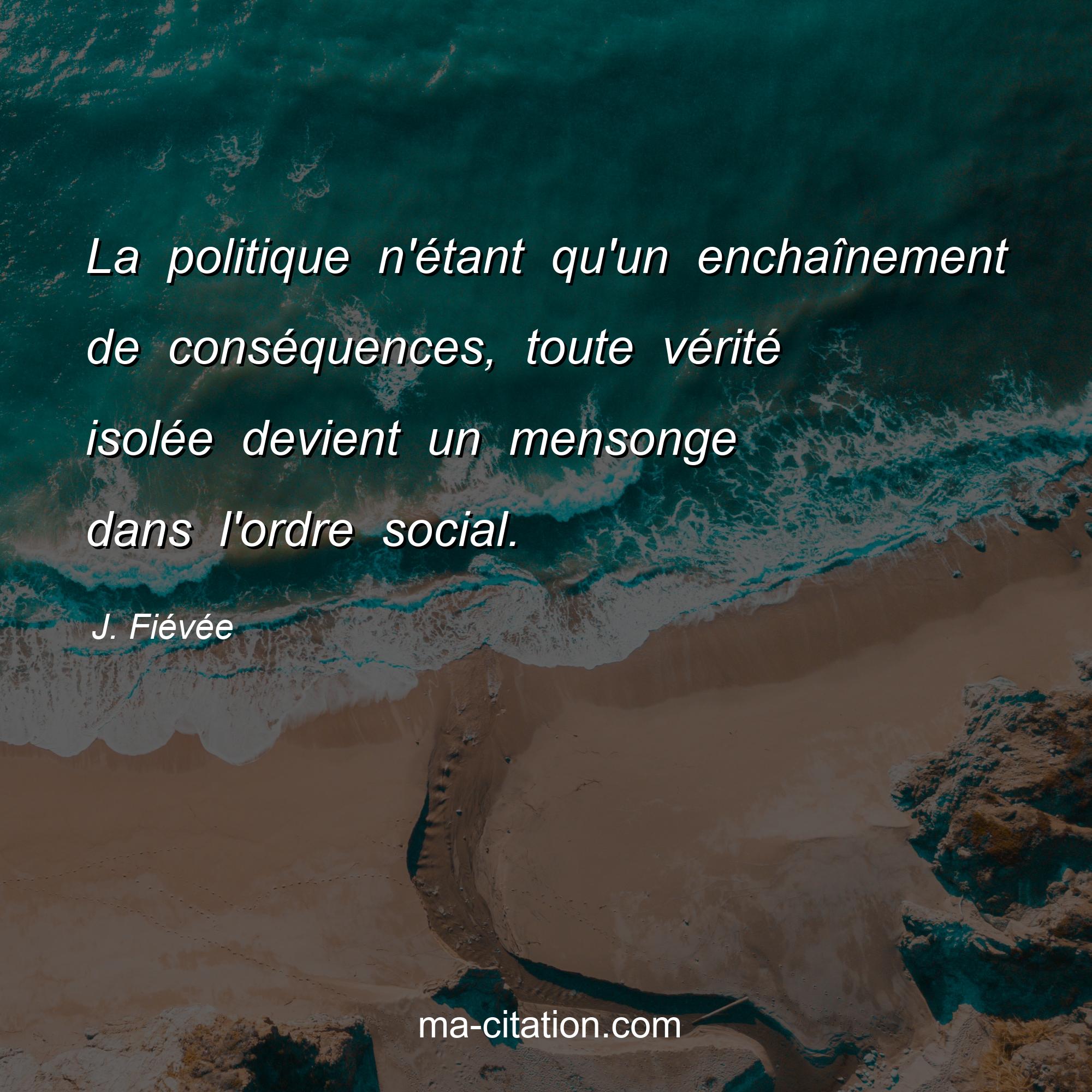 Citation sur la vie de J. Fiévée :La politique n'étant qu'un enchaînement de conséquences, toute vérité isolée devient un mensonge dans l'ordre social.