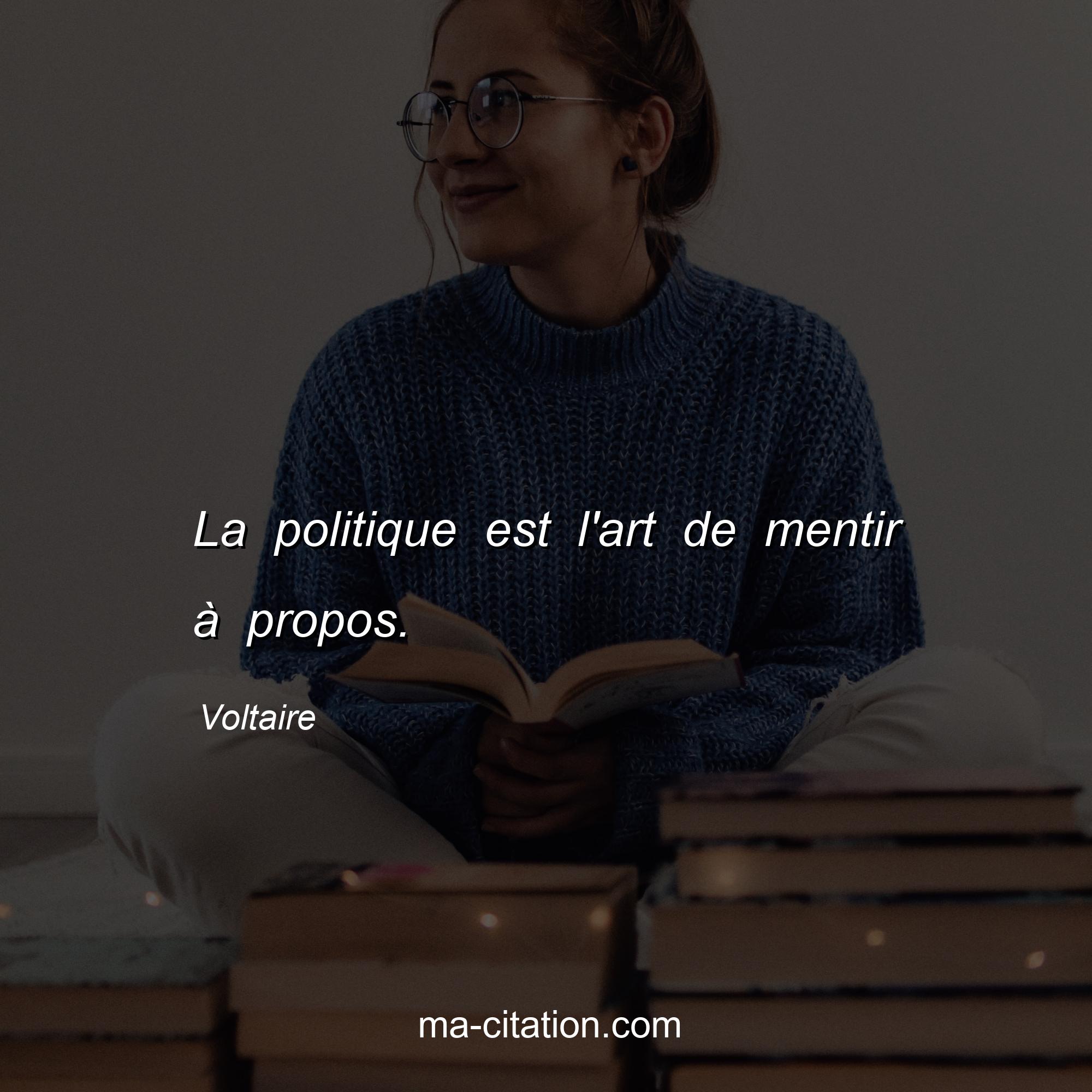 Citation sur la vie de Voltaire :La politique est l'art de mentir à propos.