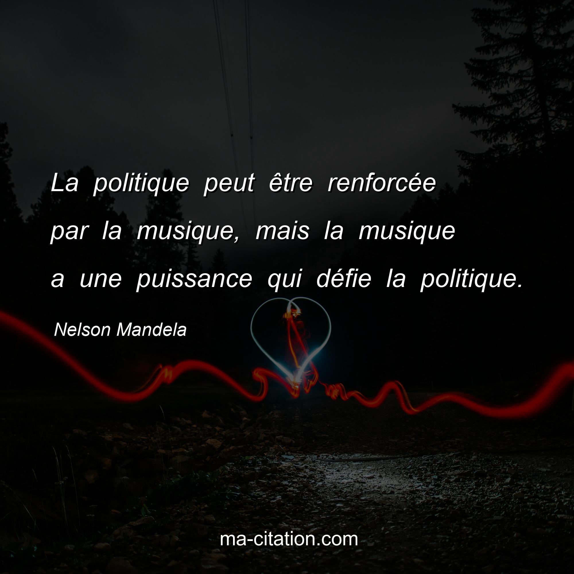 Citation sur la vie de Nelson Mandela :La politique peut être renforcée par la musique, mais la musique a une puissance qui défie la politique.