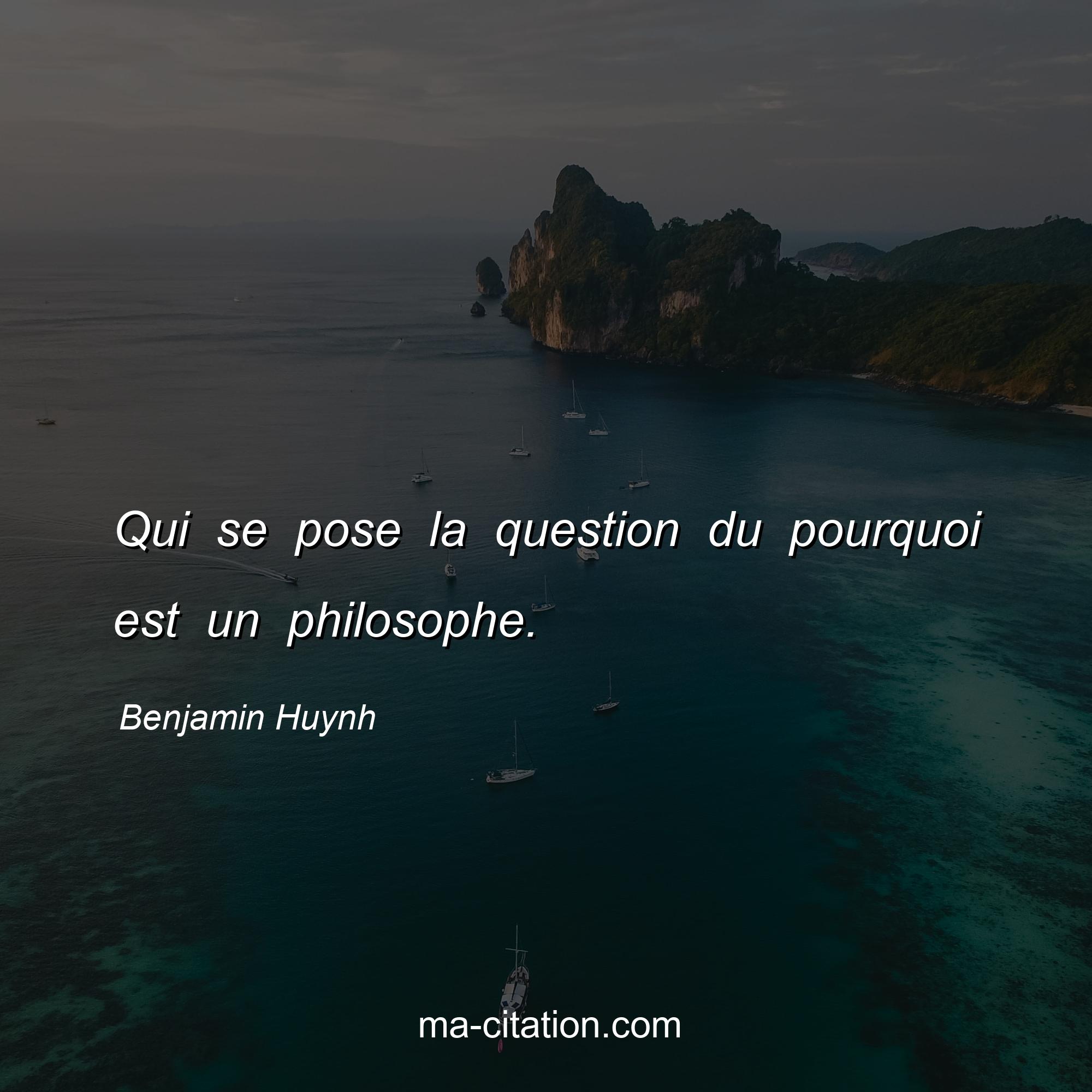 Benjamin Huynh est l'auteur de la citation sur la vie "Qui se pose la question du pourquoi est un philosophe.".