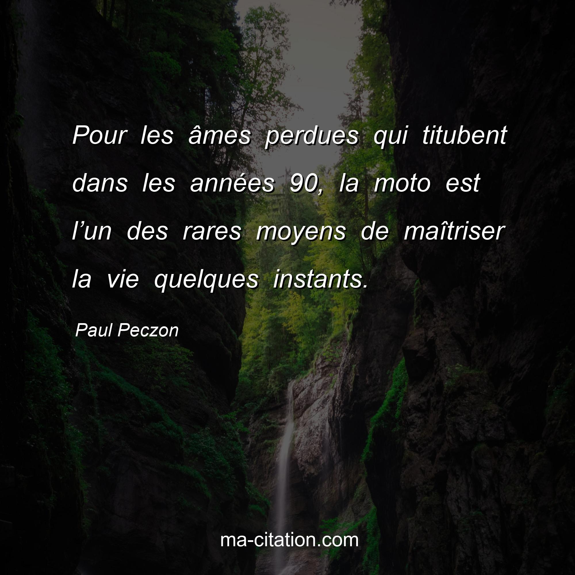 Paul Peczon est l'auteur de la citation sur la vie "Pour les âmes perdues qui titubent dans les années 90, la moto est l’un des rares moyens de maîtriser la vie quelques instants.".