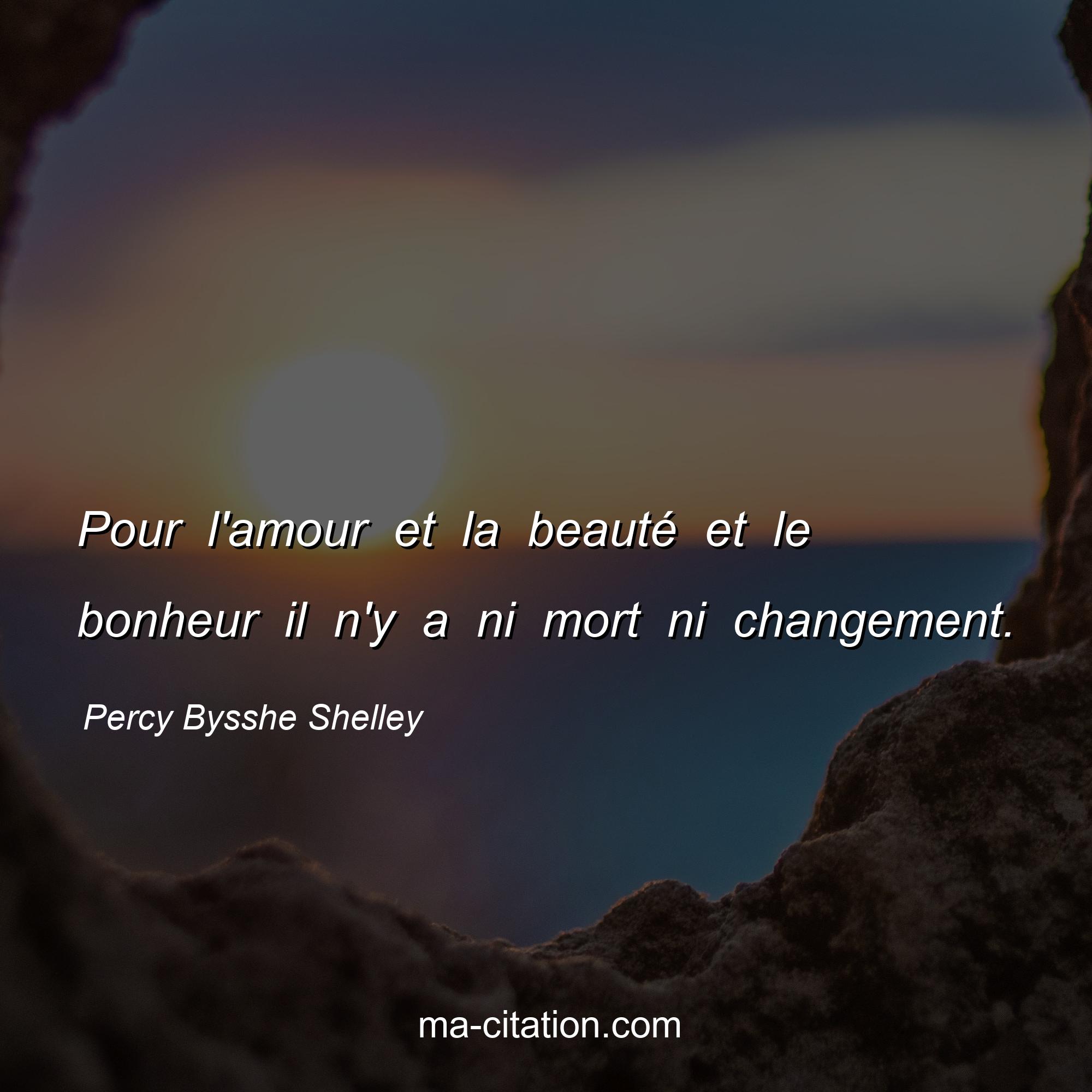 Citation sur la vie de Percy Bysshe Shelley :Pour l'amour et la beauté et le bonheur il n'y a ni mort ni changement.