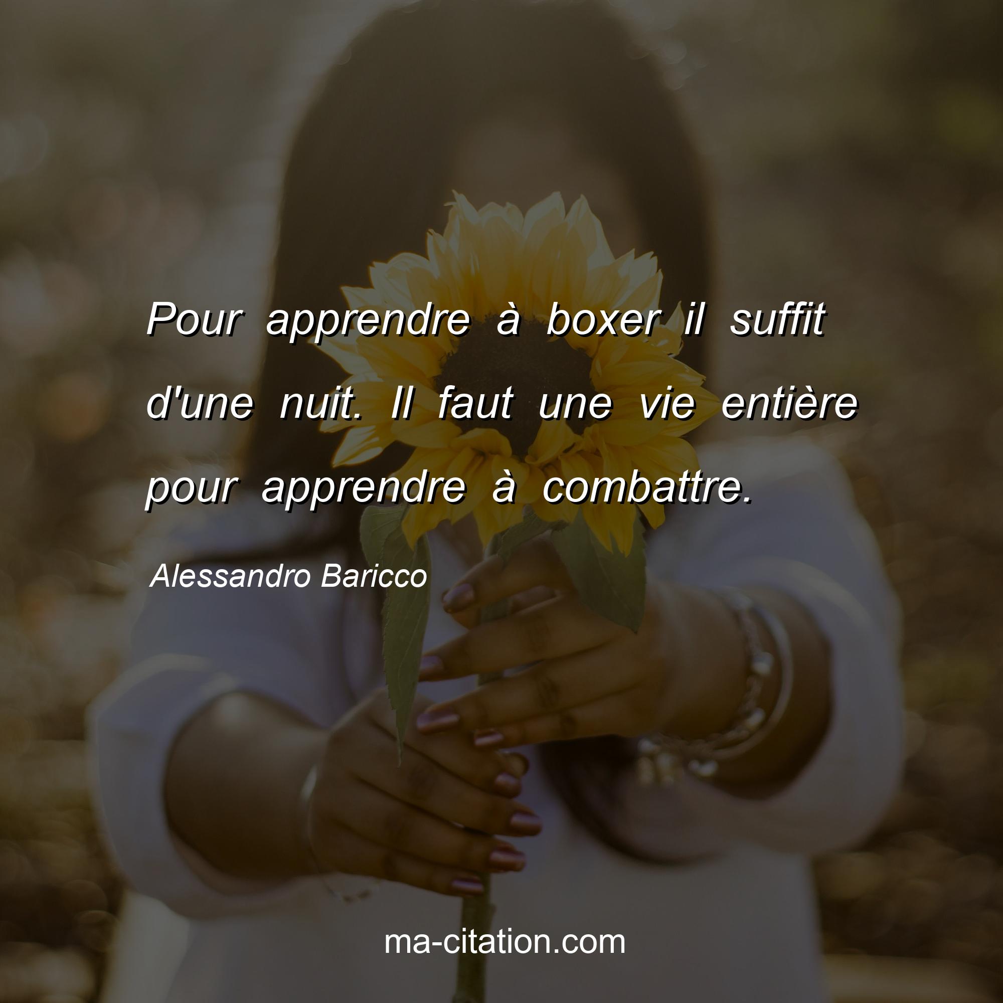 Citation sur la vie d'Alessandro Baricco :Pour apprendre à boxer il suffit d'une nuit. Il faut une vie entière pour apprendre à combattre.