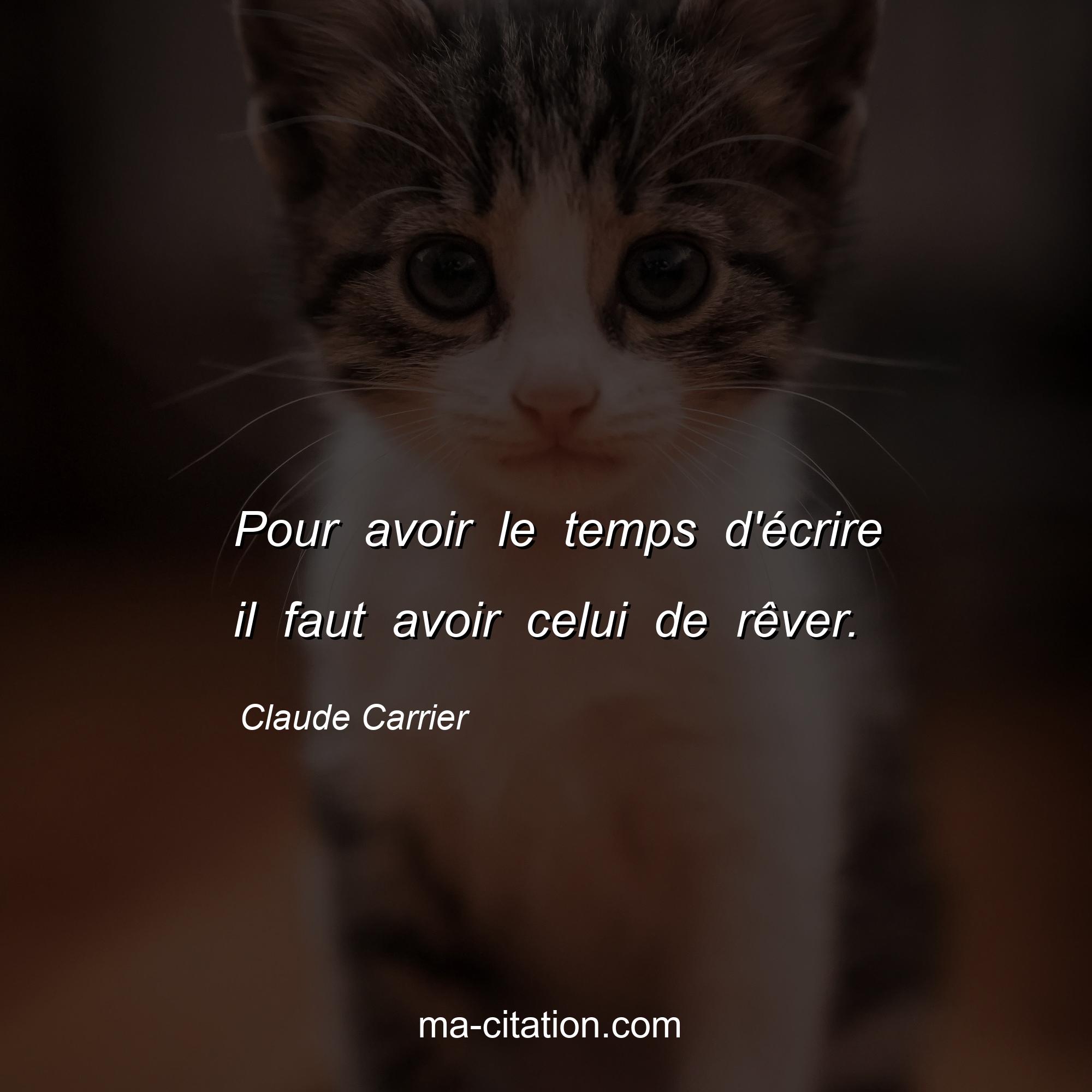 Claude Carrier est l'auteur de la citation sur la vie "Pour avoir le temps d'écrire il faut avoir celui de rêver.".