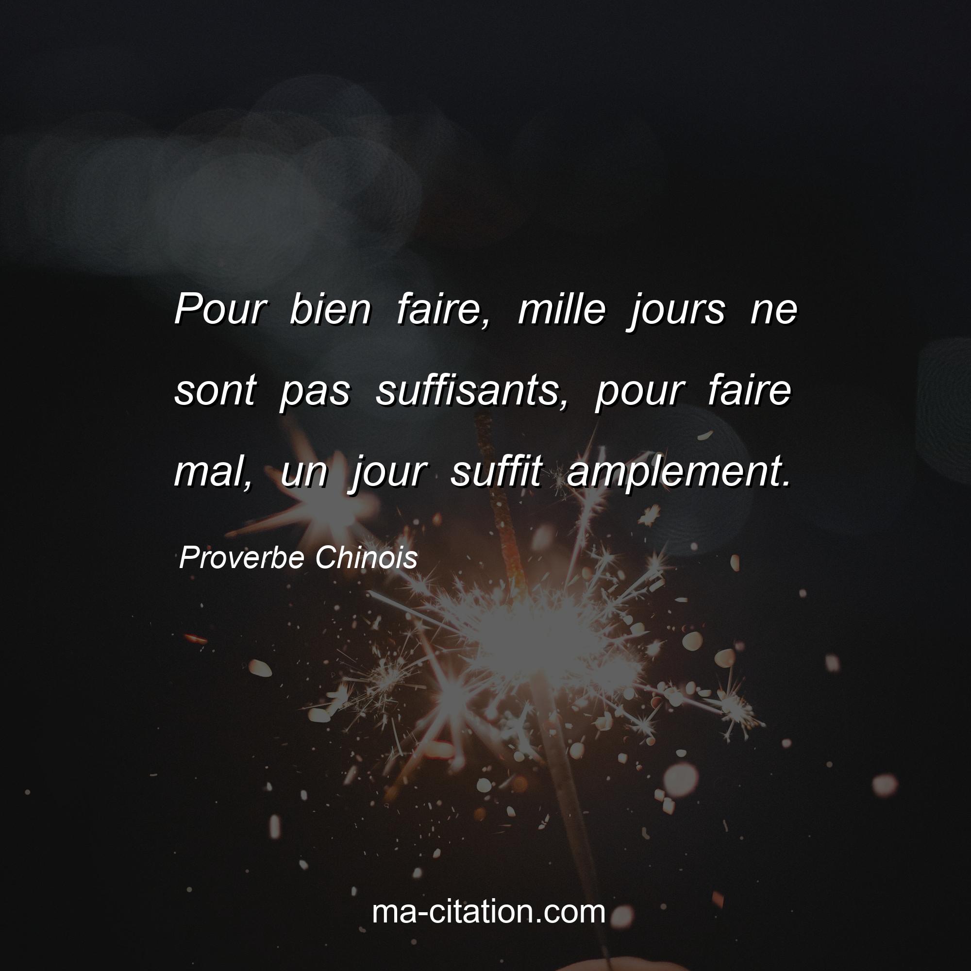 Proverbe Chinois sur la vie :Pour bien faire, mille jours ne sont pas suffisants, pour faire mal, un jour suffit amplement.