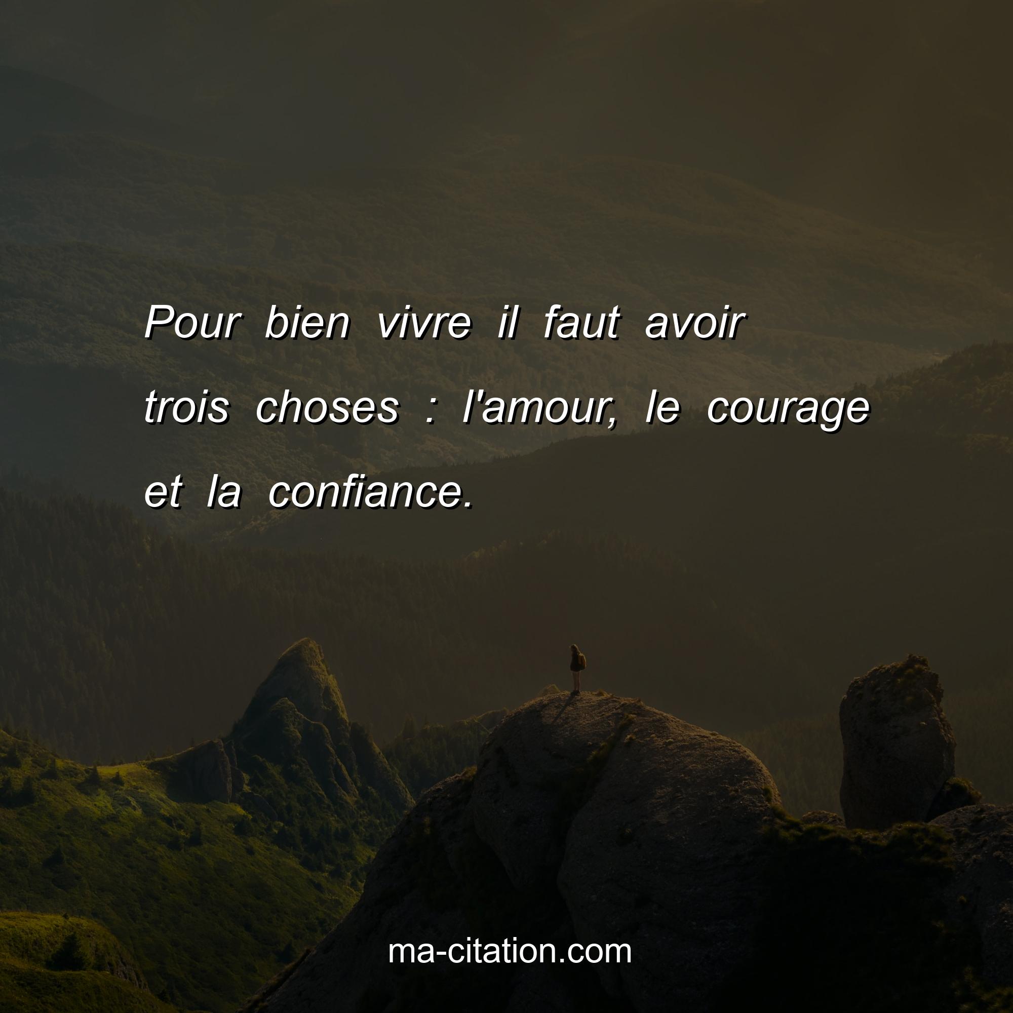 Pour bien vivre il faut avoir trois choses : l'amour, le courage et la confiance.