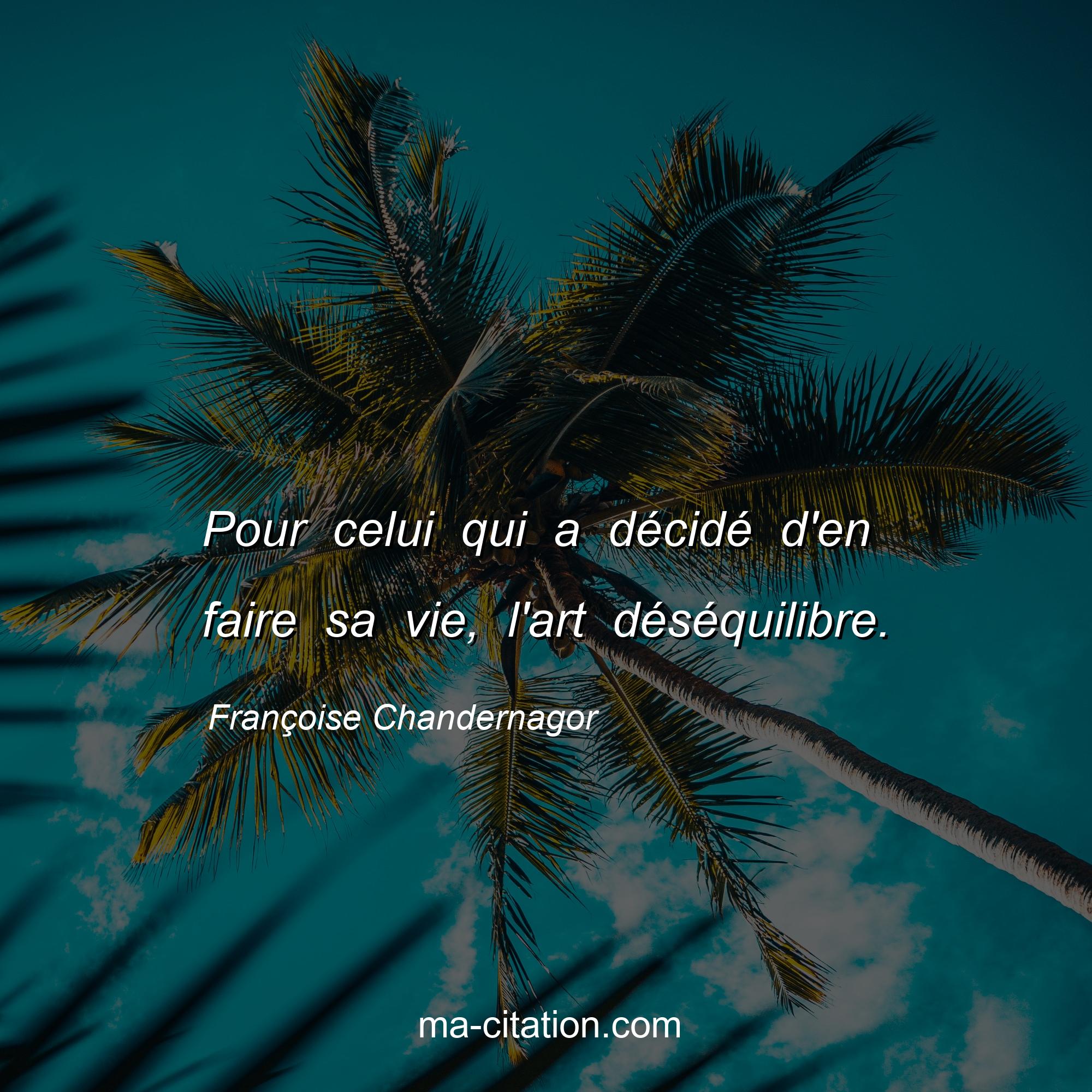 Citation sur la vie de Françoise Chandernagor :Pour celui qui a décidé d'en faire sa vie, l'art déséquilibre.
